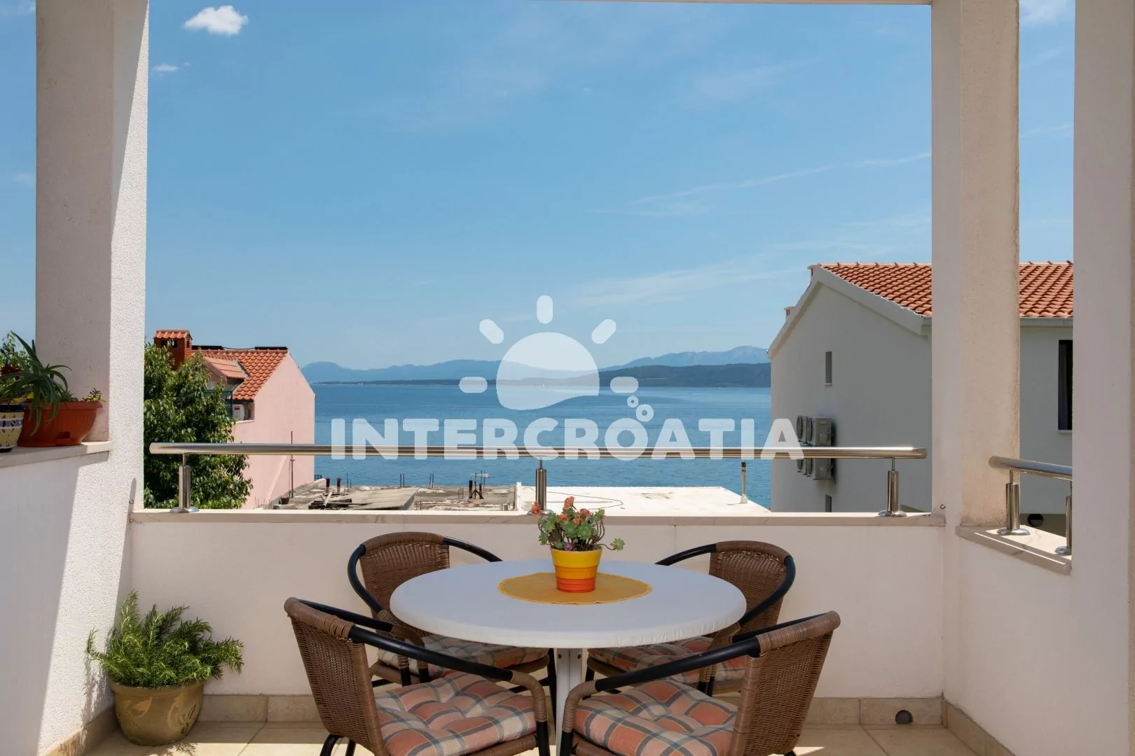 Třípodlažní apartmánový domek s balkonem, výhledem na moře a téměř u pláže.