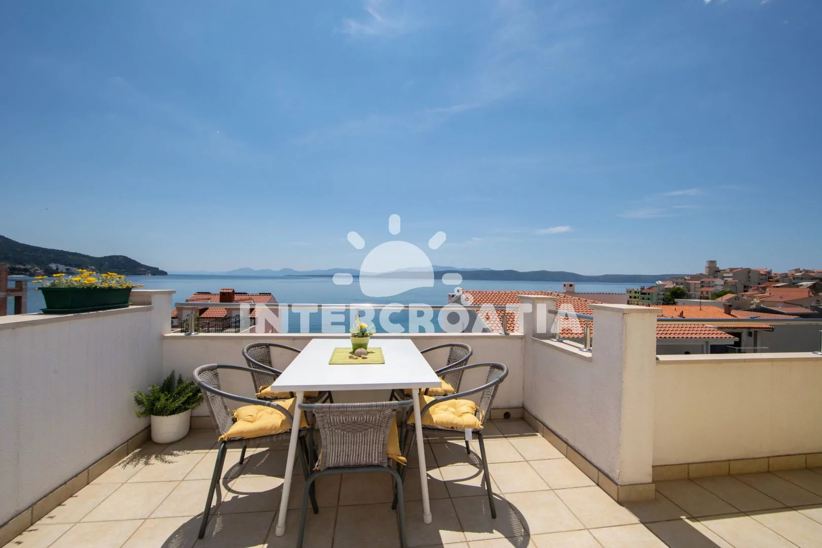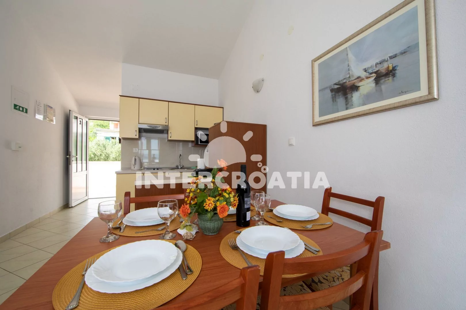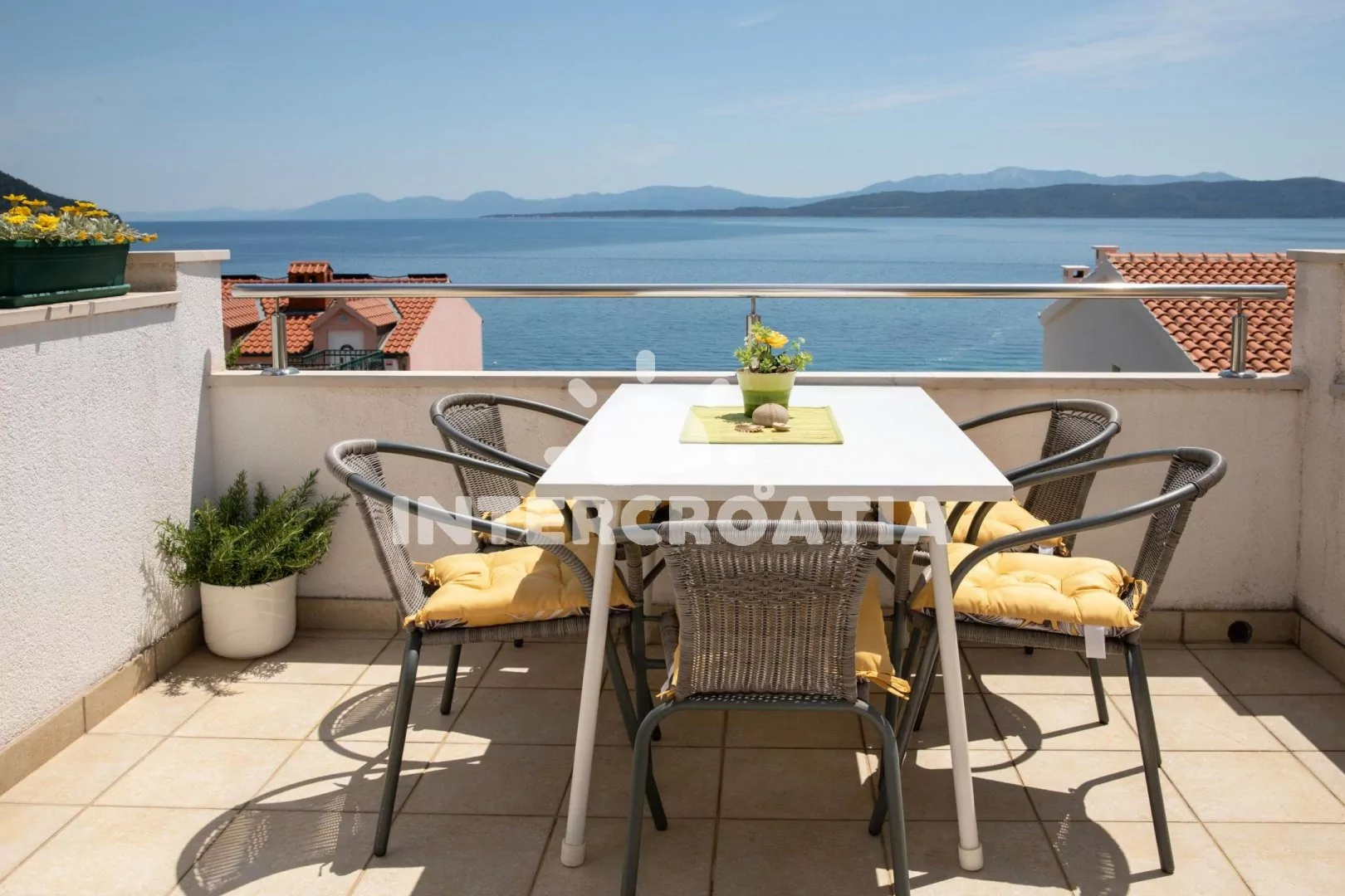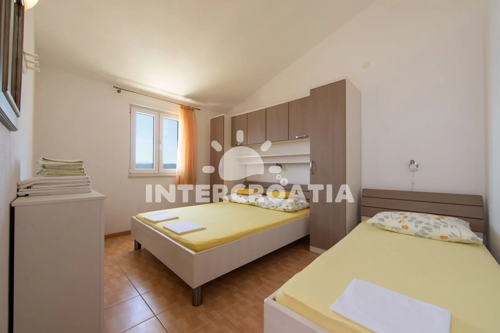 Dvoupatrový apartmánový domek s balkonem, výhledem na moře a téměř u pláže.