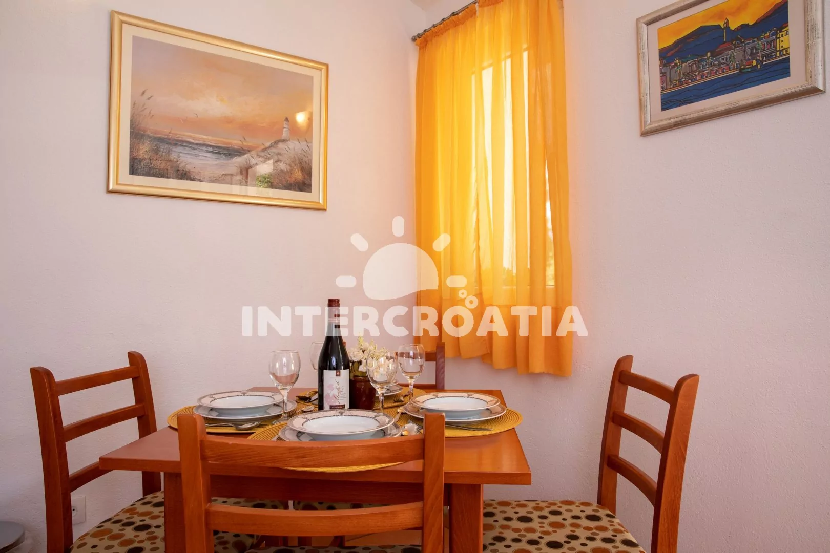 Vzdálenosti: Moře 30 m, pláž (oblázková) 50 m, centrum 50 m, market 30 m, pošta 50 m, lékárna 7 km, nemocnice 7 km, restaurace 30 m, směnárna 50 m, banka 7 km, přístav 100 m, kotviště pro čluny 100 m, potápěčský klub 12 km, tenisové kurty 1,2 km, diskotéka 6 km, bar 20 m, čerpací stanice 7 km, veřejná doprava 300 m, trajekt (Drvenik) 7 km, letiště (Split) 106 km.