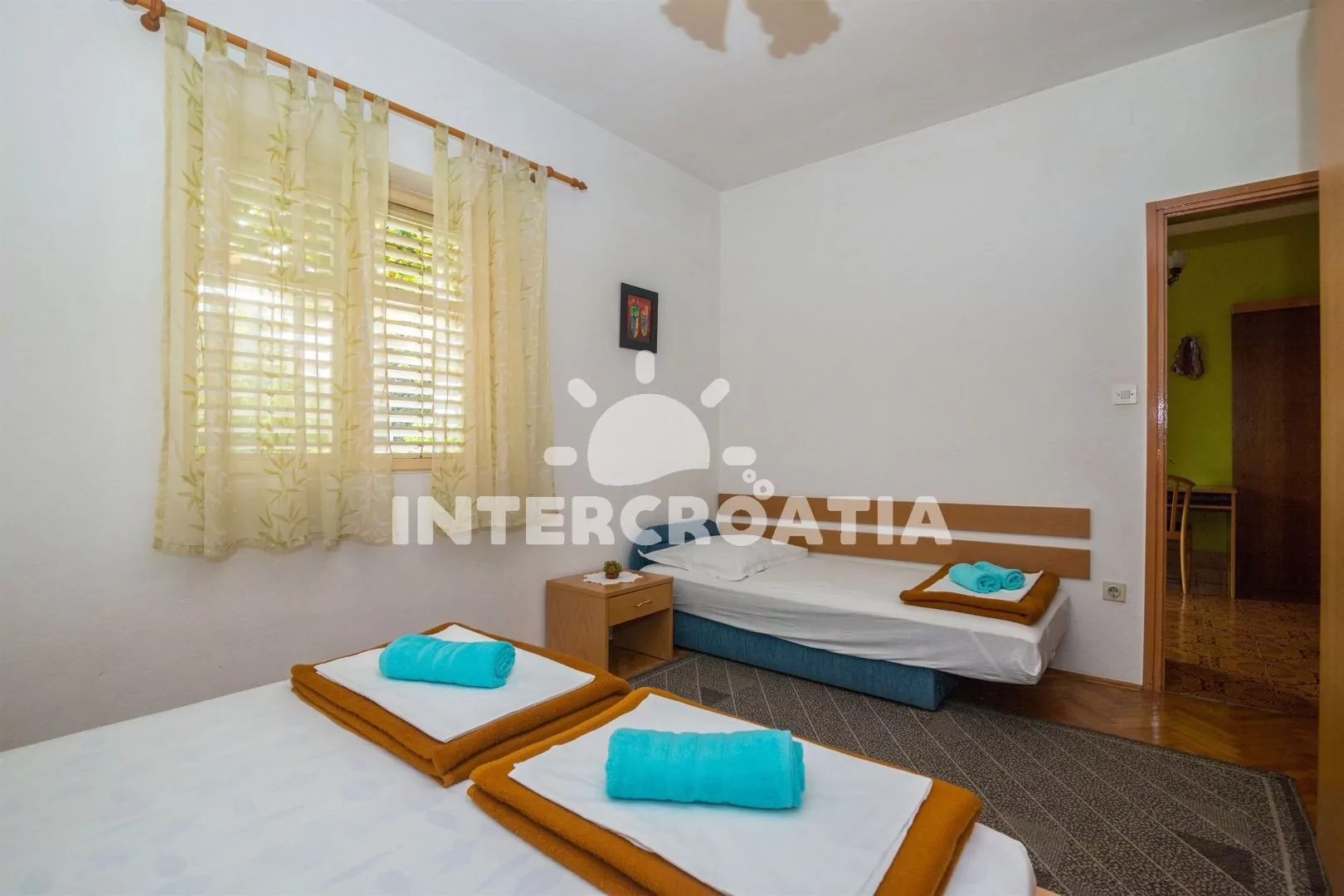 Domácí zvířata jsou povolena (5 €/den, nahlásit při rezervaci). V ceně pobytu zahrnuto: WiFi, klimatizace, povlečení, ručníky, pobytová taxa a závěrečný úklid. Žehlička, pračka a fén k dispozici u pronajímatele (služba na požádání). Registrační poplatek (180 Kč/osoba/pobyt, se připočte automaticky k ceně objednávky). Pronajímatel se dorozumí chorvatsky, anglicky, německy, francouzsky a italsky.