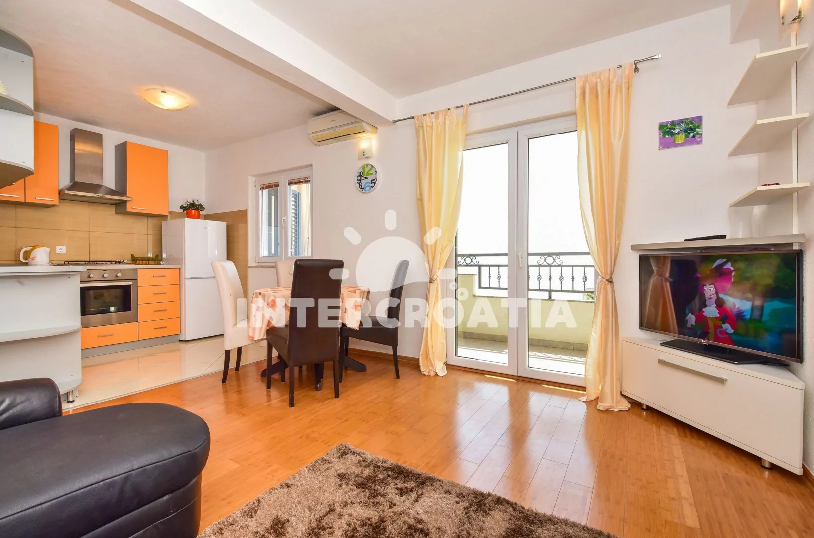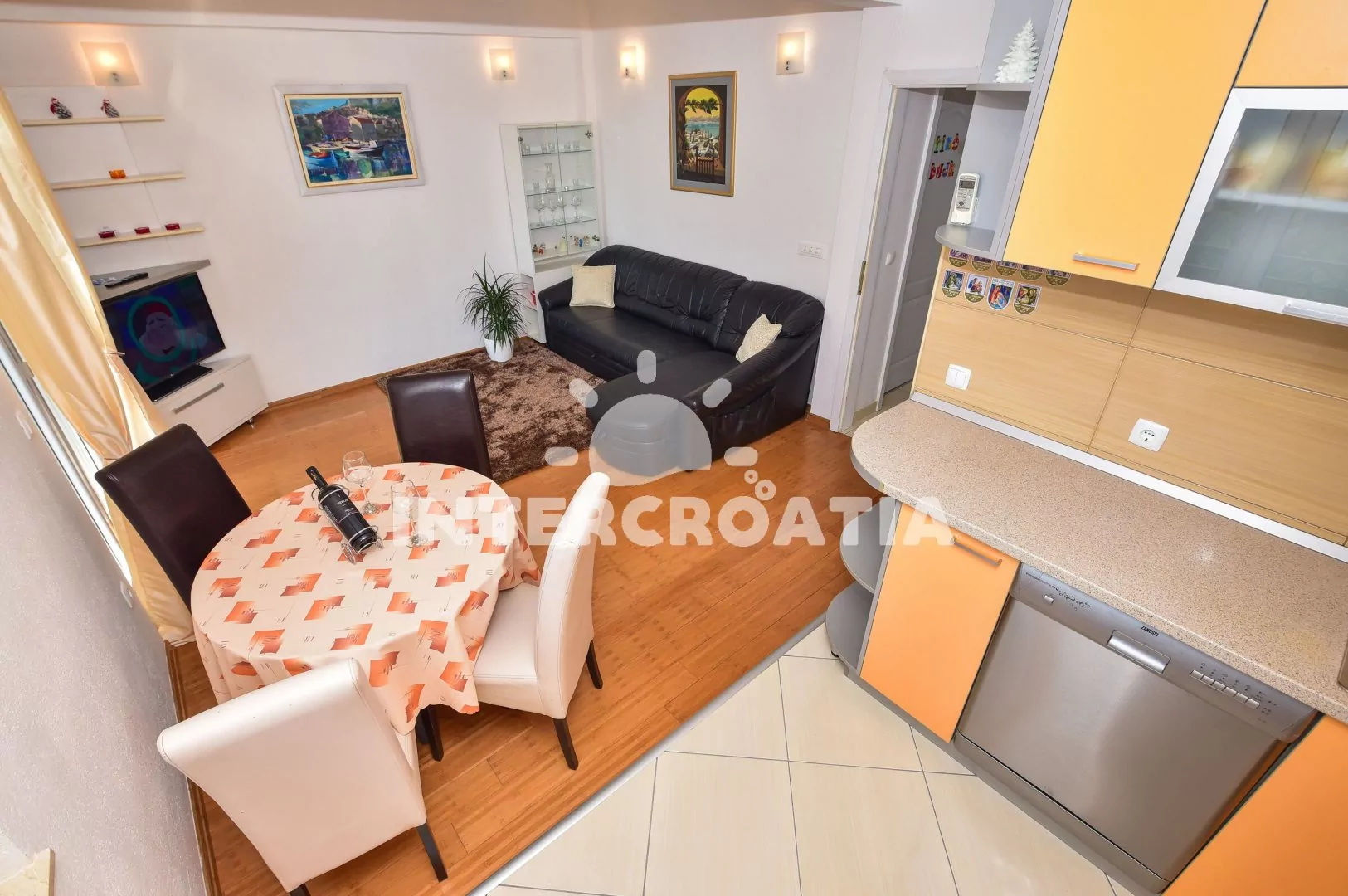 Moderně zařízený apartmán (50m2), s balkonem a výhledem na moře se nachází v 1. patře vily a je vhodný pro 4 osoby. Obývací pokoj je spojený s kuchyní. Kuchyňská linka je vybavena varnou deskou,…