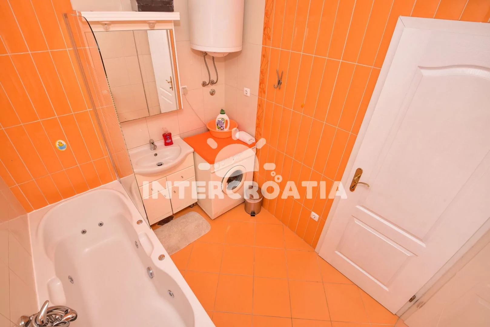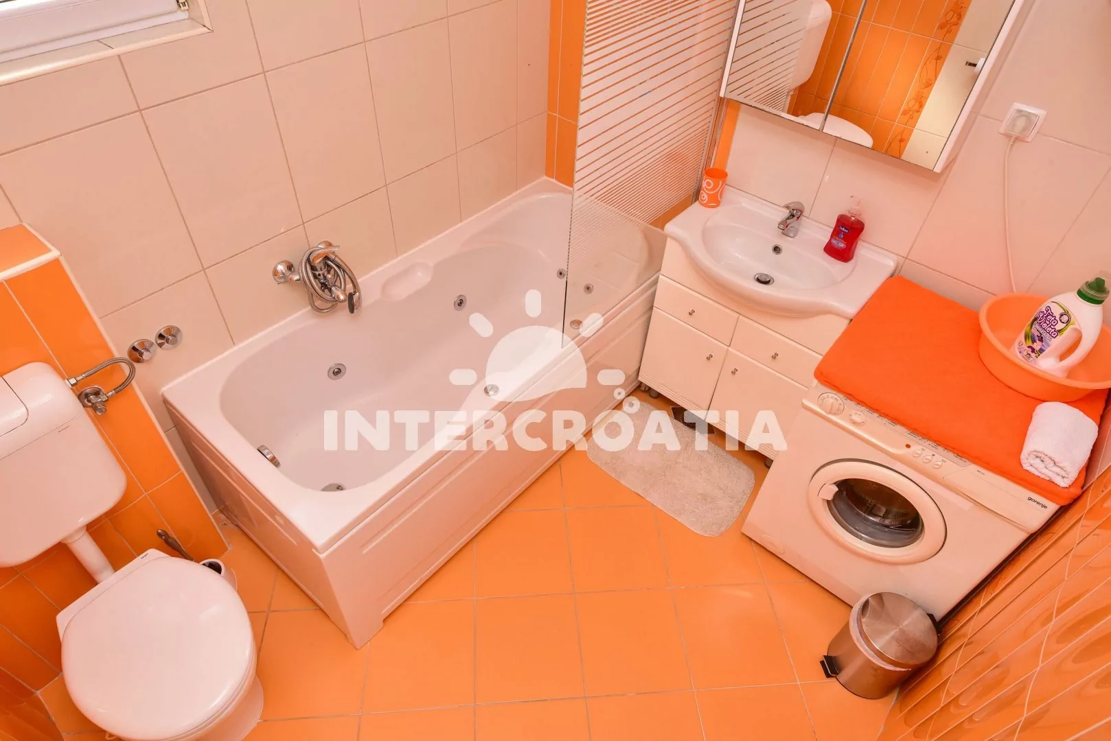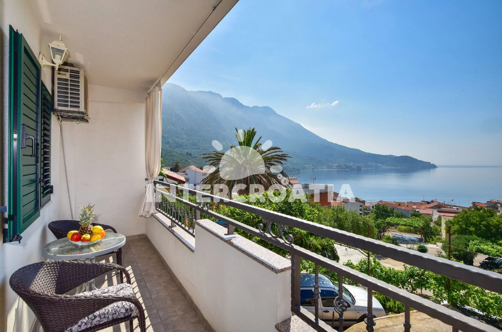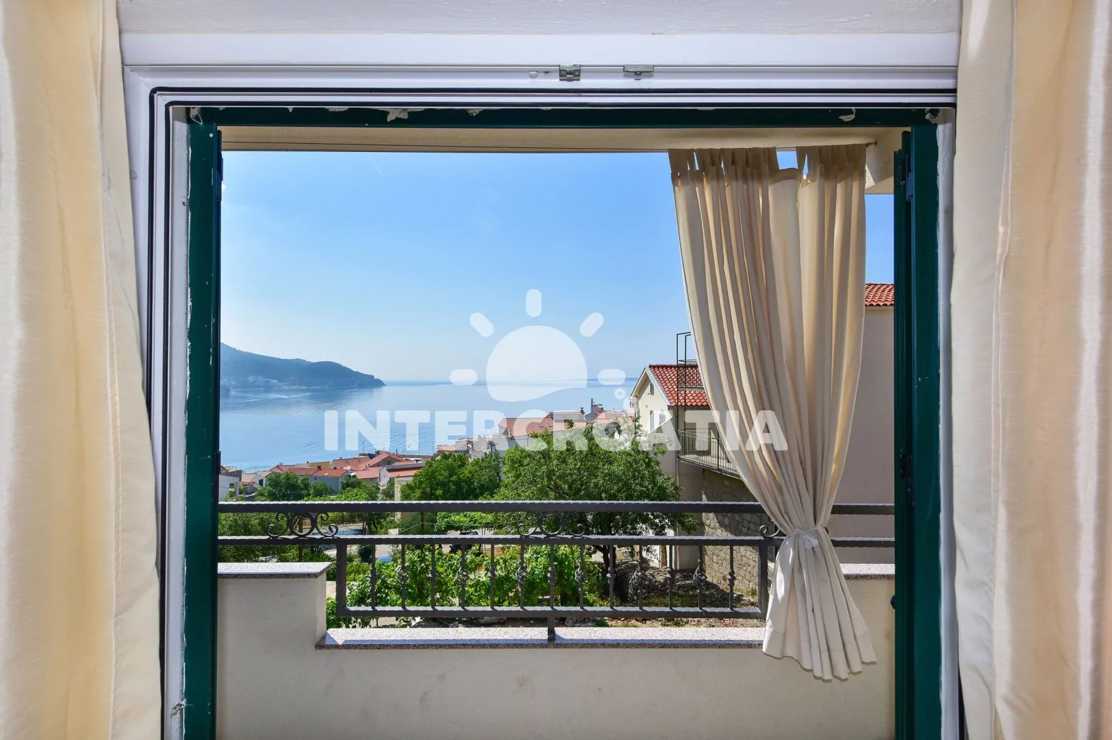 Moderně zařízený apartmán (50m2), s balkonem a výhledem na moře se nachází v 1. patře vily a je vhodný pro 4 osoby. Obývací pokoj je spojený s kuchyní. Kuchyňská linka je vybavena varnou deskou, digestoří, troubou, myčkou na nádobí, rychlovarnou konvicí, toustovačem, nádobím a lednicí s mrazákem. Obývací pokoj s jídelním stolem pro 4 osoby, pohovkou (rozložitelná na extra lůžko pro 1 osobu), televizí se satelitním programem, sejfem, klimatizací a vstupem na balkon. První i druhá ložnice je vybavena vždy s jedním dvoulůžkem. Koupelna s vanou, sprchovou zástěnou, umyvadlem, fénem, pračkou a wc. Hostům je k dispozici parkování u objektu zdarma.