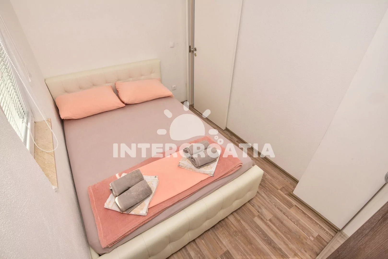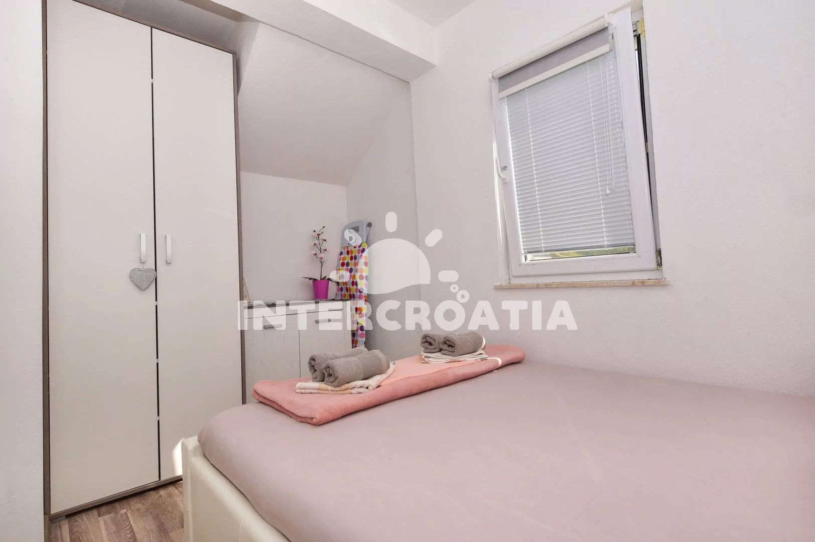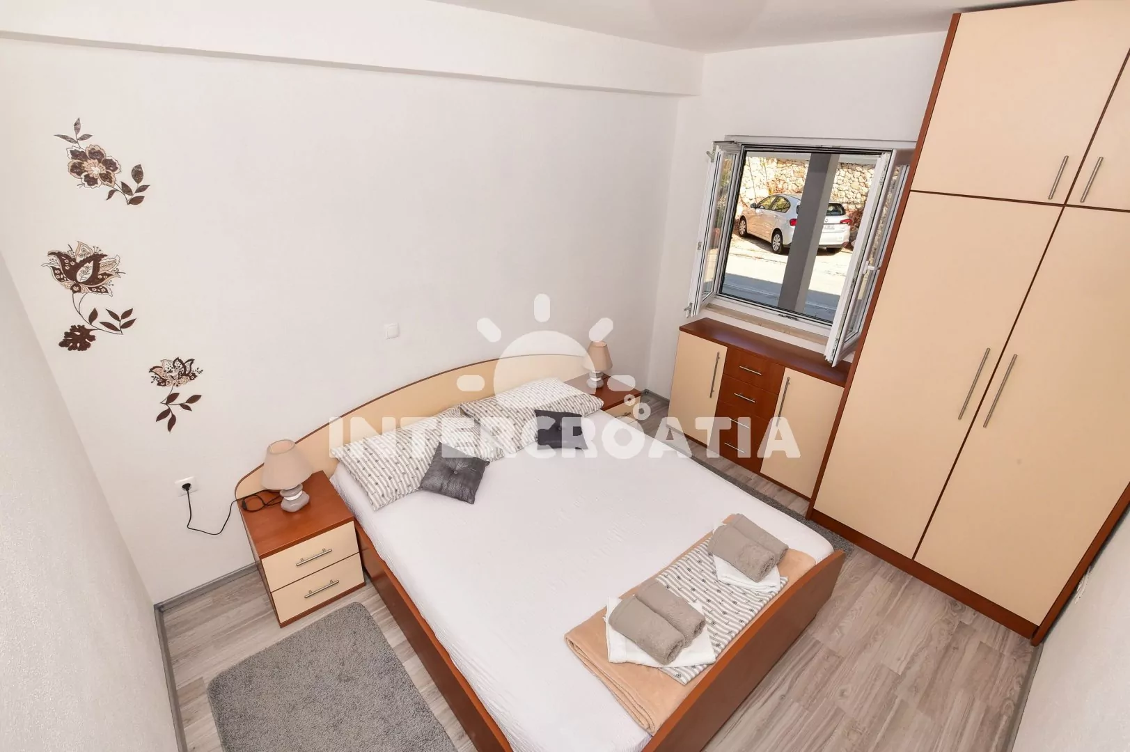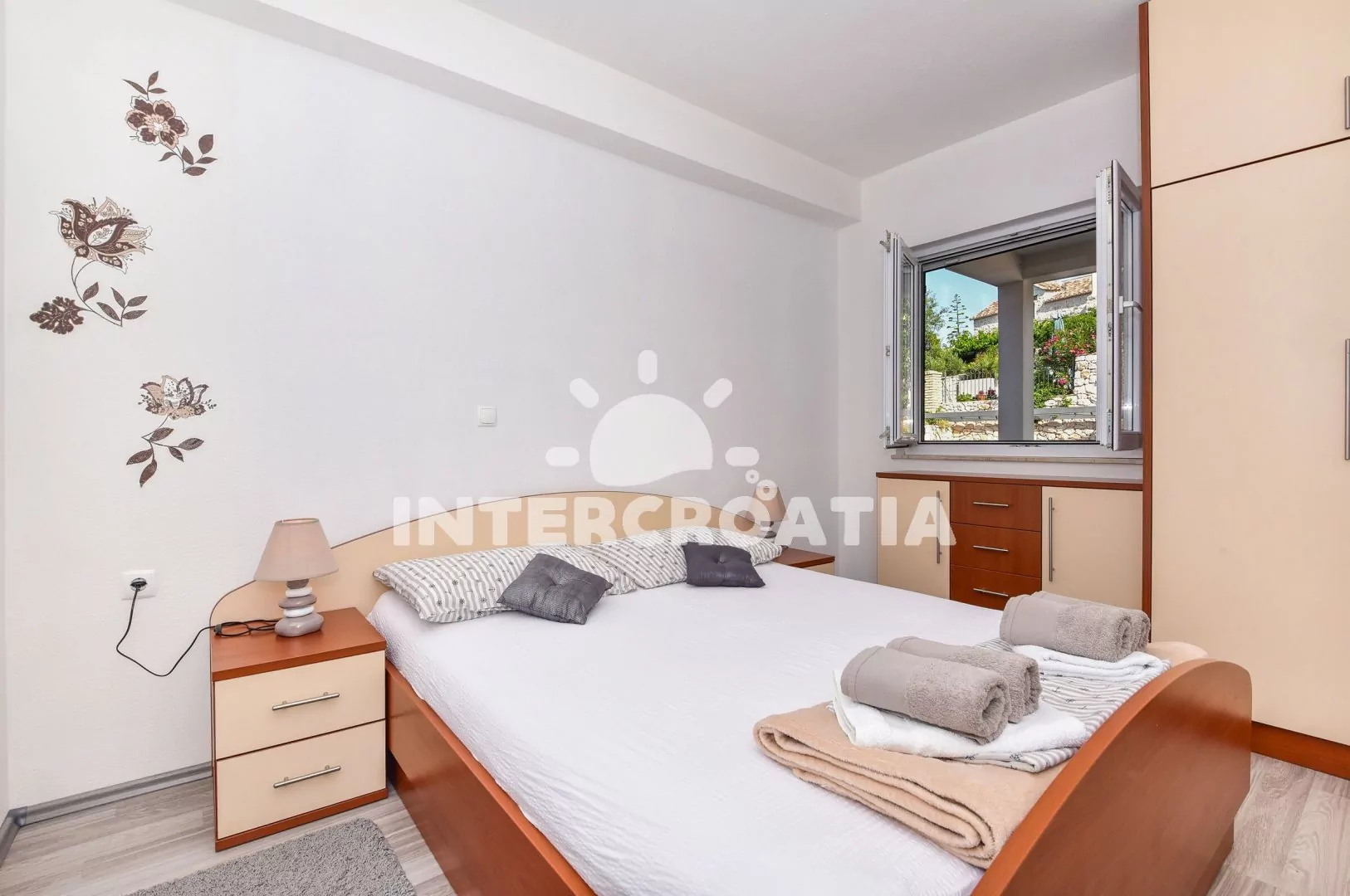 Vzdálenosti: Moře a písčitá-oblázková pláž 150 m (cesta se schody), 300 m (cesta bez schodů), centrum 50 m, supermarket 96 m, pošta 100 m, ambulance, směnárna, restaurace, bar, přístav 150 m, čerpací stanice 700 m, lékárna, trajekt 7 km, letiště 80 km.