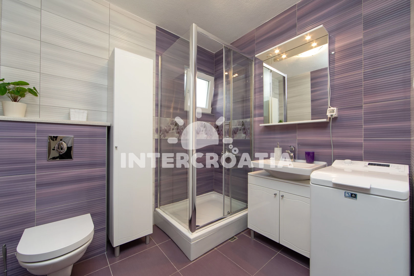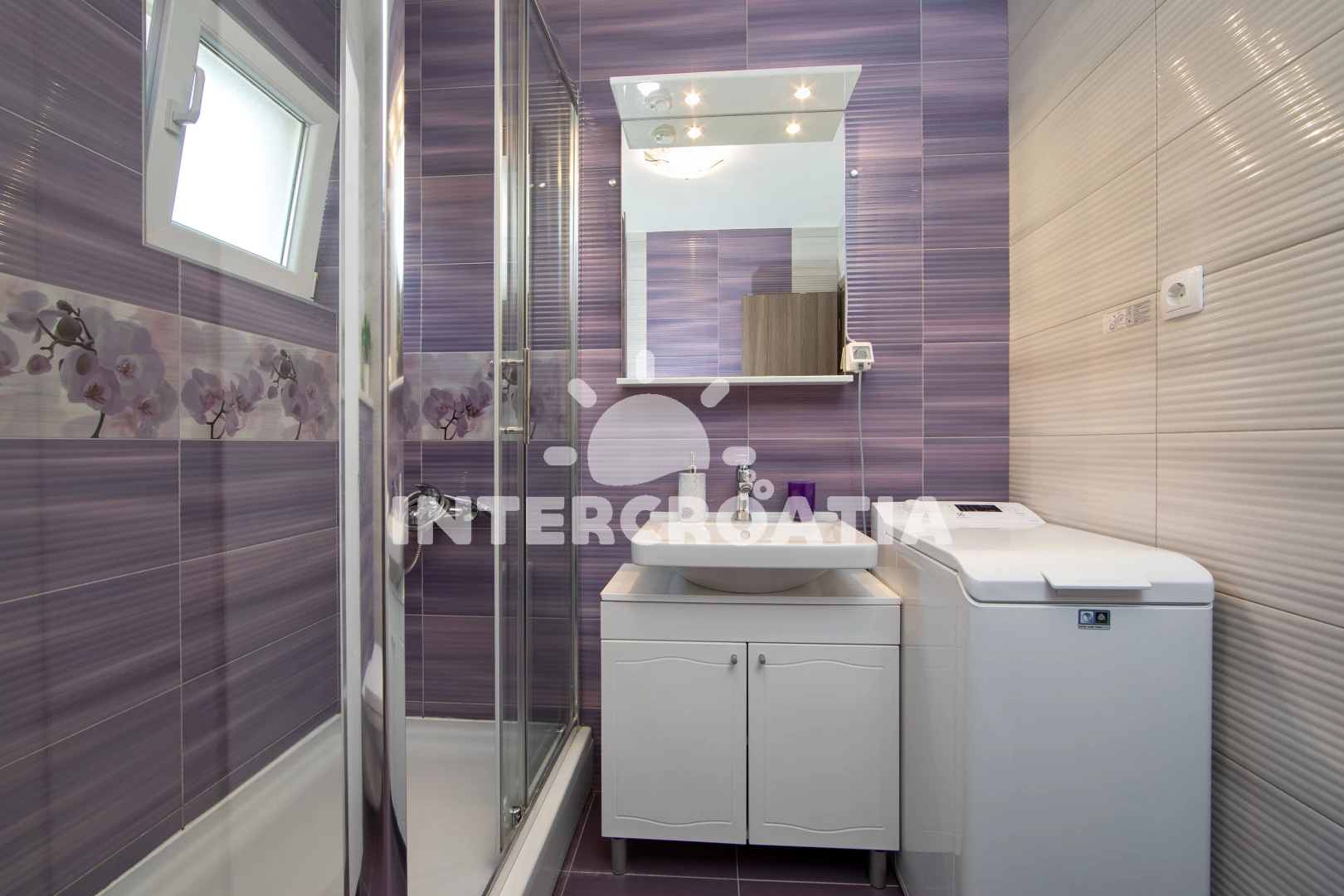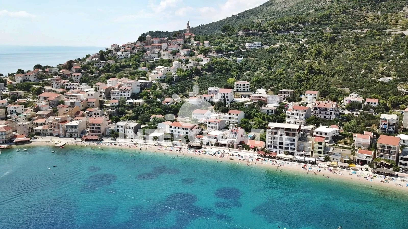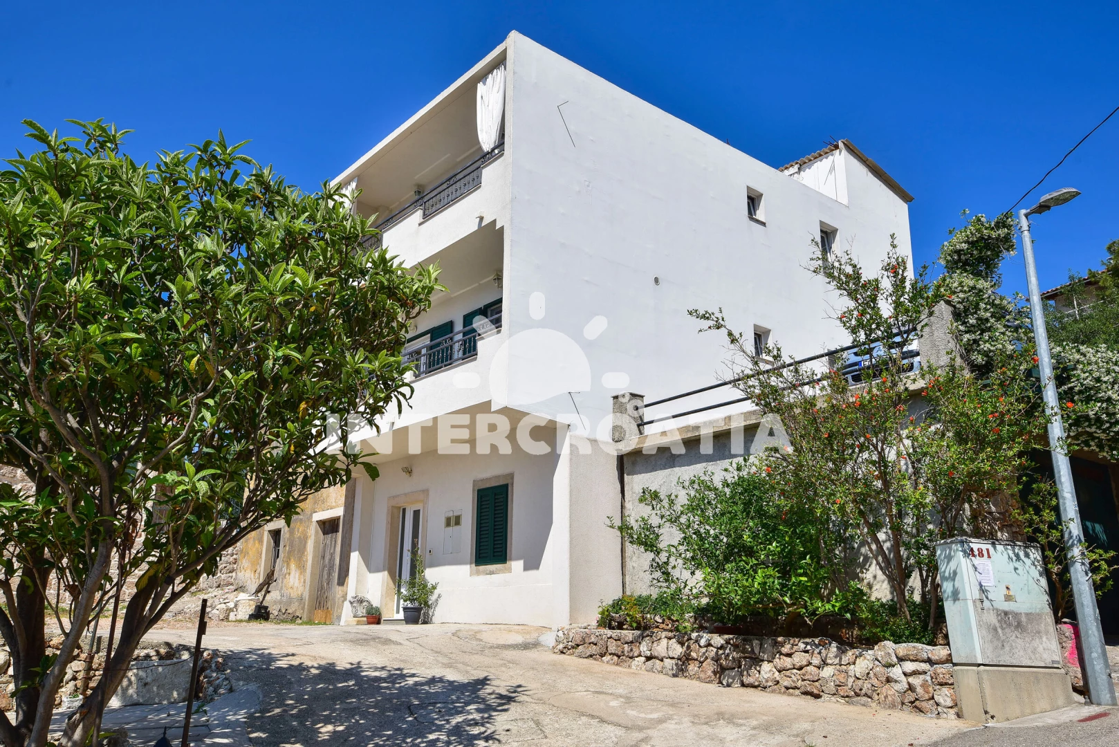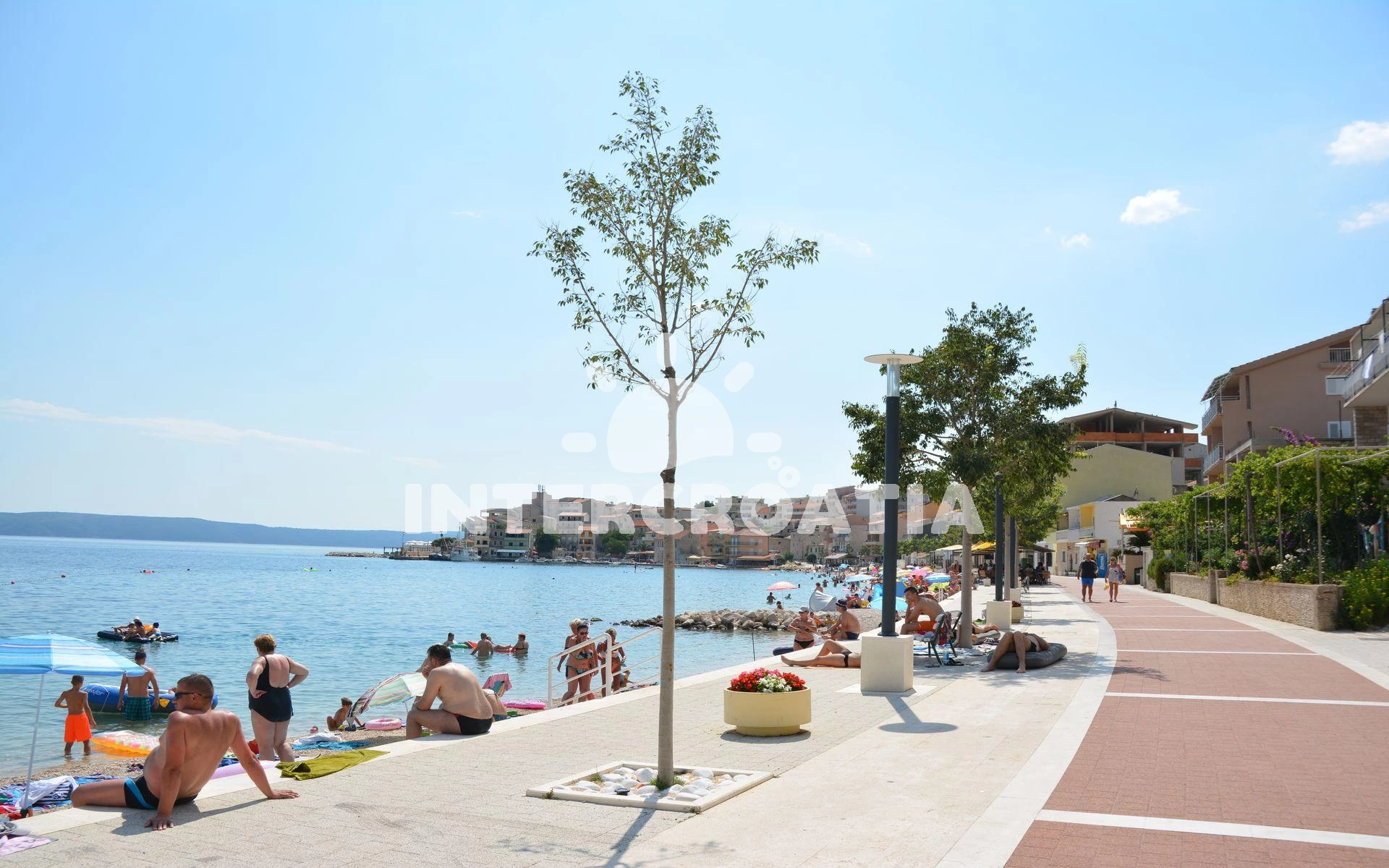 Vzdálenosti: Moře a písčitá-oblázková pláž 150 m (cesta se schody), 300 m (cesta bez schodů), centrum 50 m, supermarket 96 m, pošta 100 m, ambulance, směnárna, restaurace, bar, přístav 150 m, čerpací stanice 700 m, lékárna, trajekt 7 km, letiště 80 km.