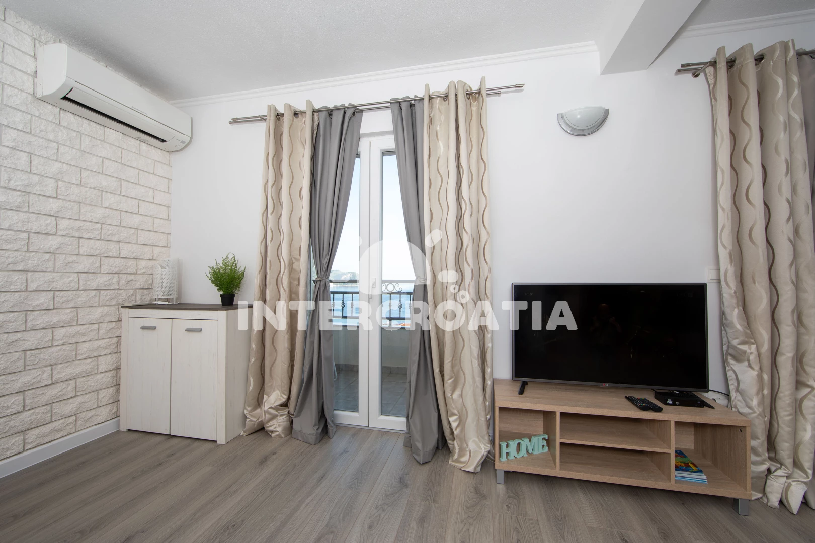 Příjemně zařízený apartmán (60m2), typu studio, s balkonem a výhledem na moře se nachází v 2. patře vily a je vhodný pro 2 až 4 osoby. Obývací místnost je spojena s kuchyní. Kuchyňská linka je vybavena varnou deskou, mikrovlnnou troubou, rychlovarnou konvicí, toustovačem, nádobím a lednicí s mrazákem. Obývací místnost s jídelním stolem pro 4 osoby, pohovkou (rozložitelná na extra lůžko pro 2 osoby), televizí se satelitním programem, sejfem, klimatizací, jedním dvoulůžkem a vstupy na balkon. Koupelna se sprchovým koutem, umyvadlem, fénem a wc. Hostům je k dispozici parkování u objektu zdarma.