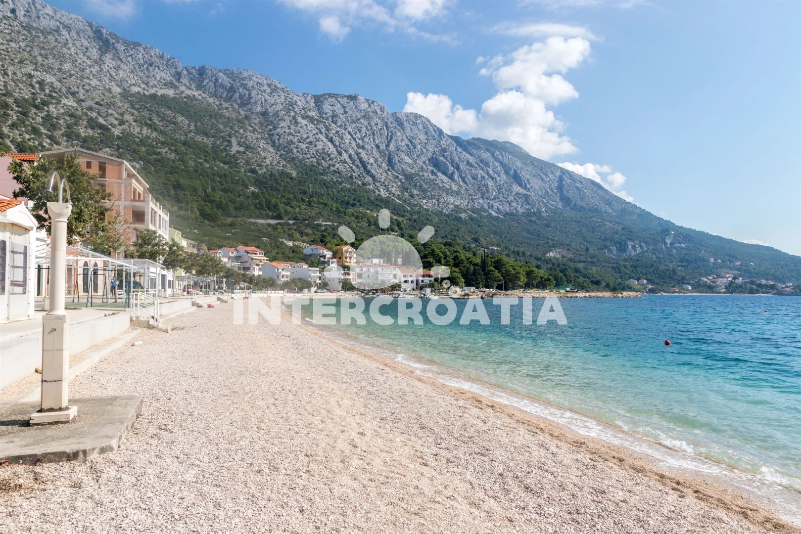 Vzdálenosti: Moře 50 m, pláž 70 m (oblázky), centrum 10 m, supermarket 10 m, pošta 10 m, veřejná doprava 15 m, restaurace 20 m, bar 20 m, směnárna 20 m, kotviště pro čluny 50 m, potápění 100 m, tenisové kurty 4 km, čerpací stanice 7 km, banka 7 km, lékárna 7 km, diskotéka 7 km, ambulance 15 km, trajekt (Makarska) 15 km, marina 15 km, letiště (Split) 105 km,