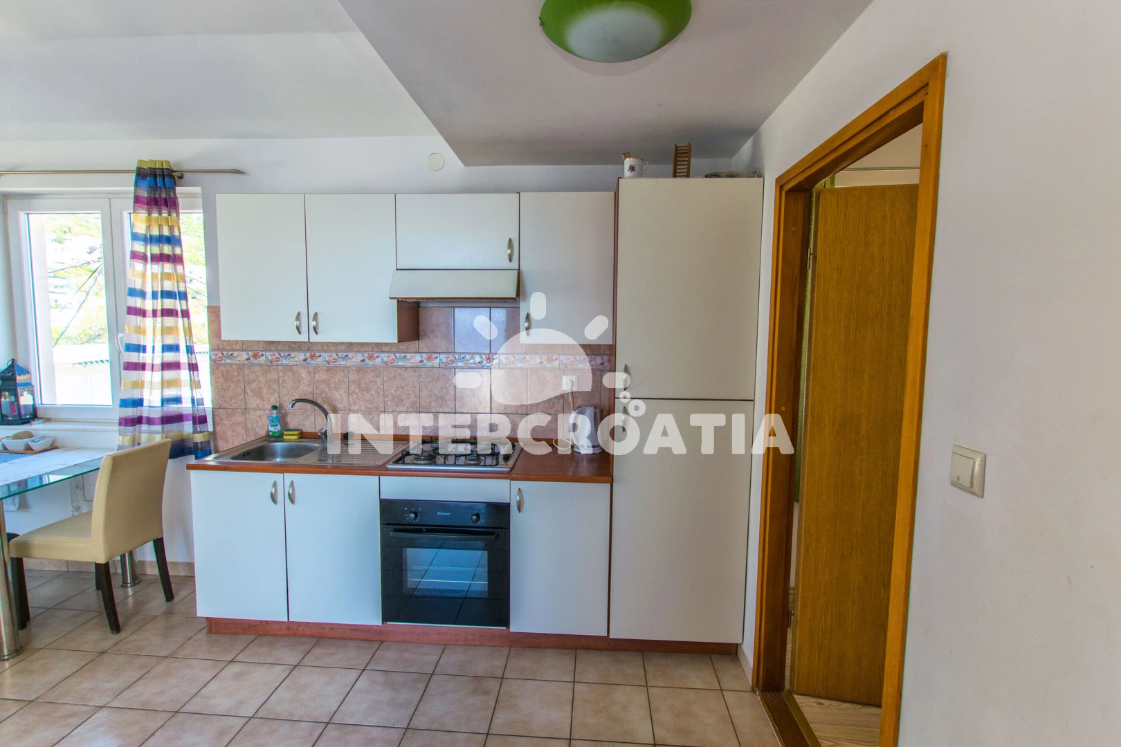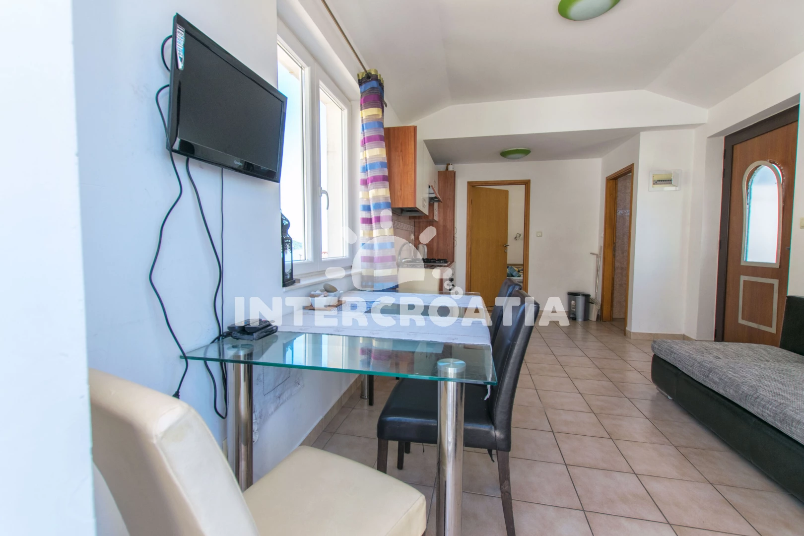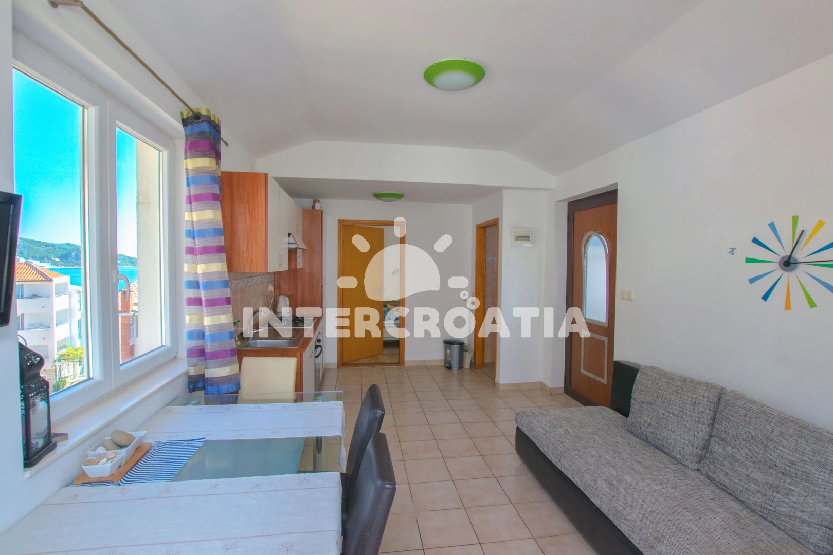 Vzdálenosti: Moře 100 m, pláž 100 m (oblázková a větší kamení), supermarket 140 m, pošta 150 m, bar 150 m, restaurace 150 m, centrum 200 m, veřejná doprava 500 m, marina 10 km, diskotéka 17 km, lékárna 17 km, ambulance 17 km, banka 17 km, čerpací stanice 17,0 km,