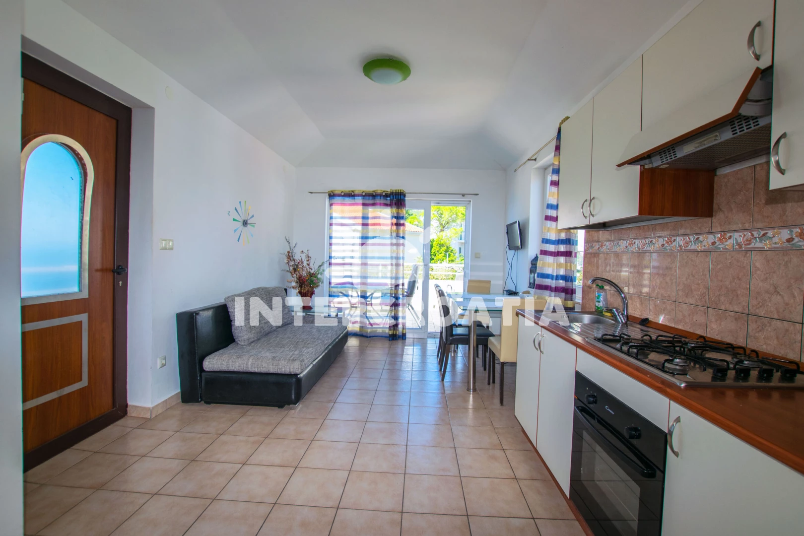Apartmán se nachází 100 m od moře a pláže. Pláž je oblázková a větší kamení. U objektu je k dispozici společná zahrada s posezením a grilem.