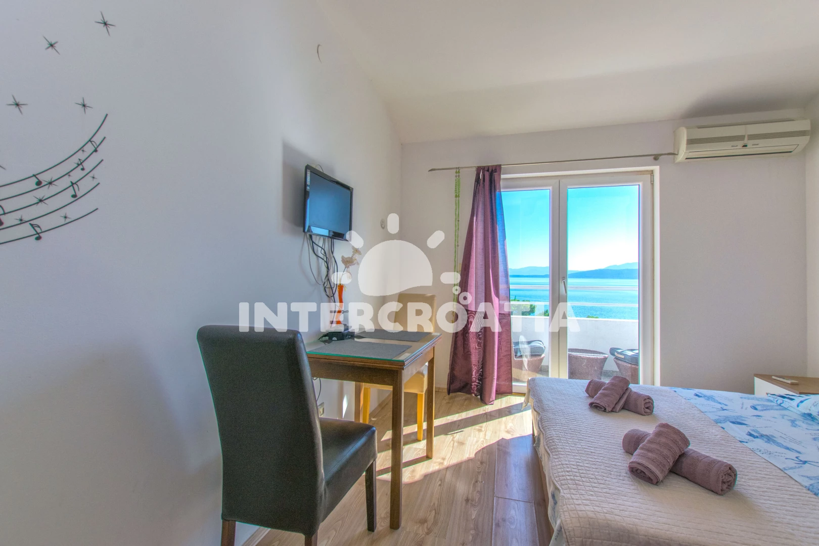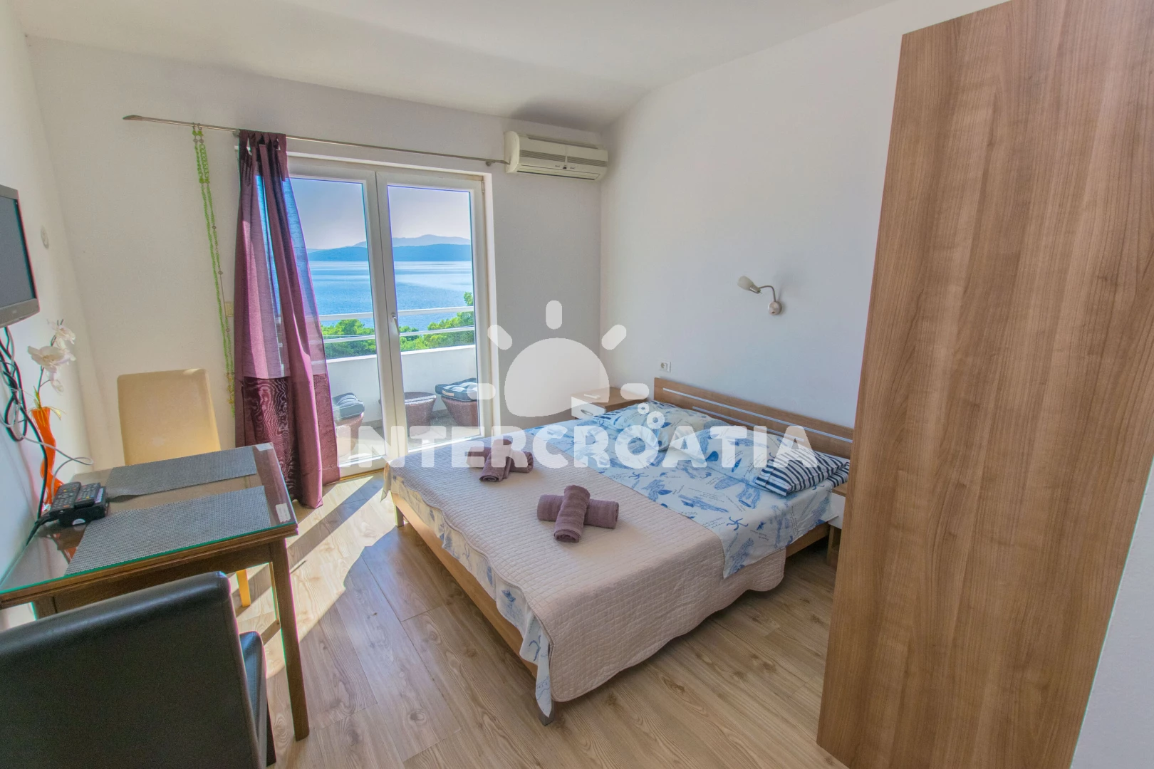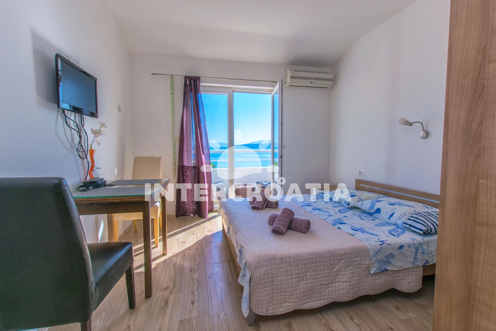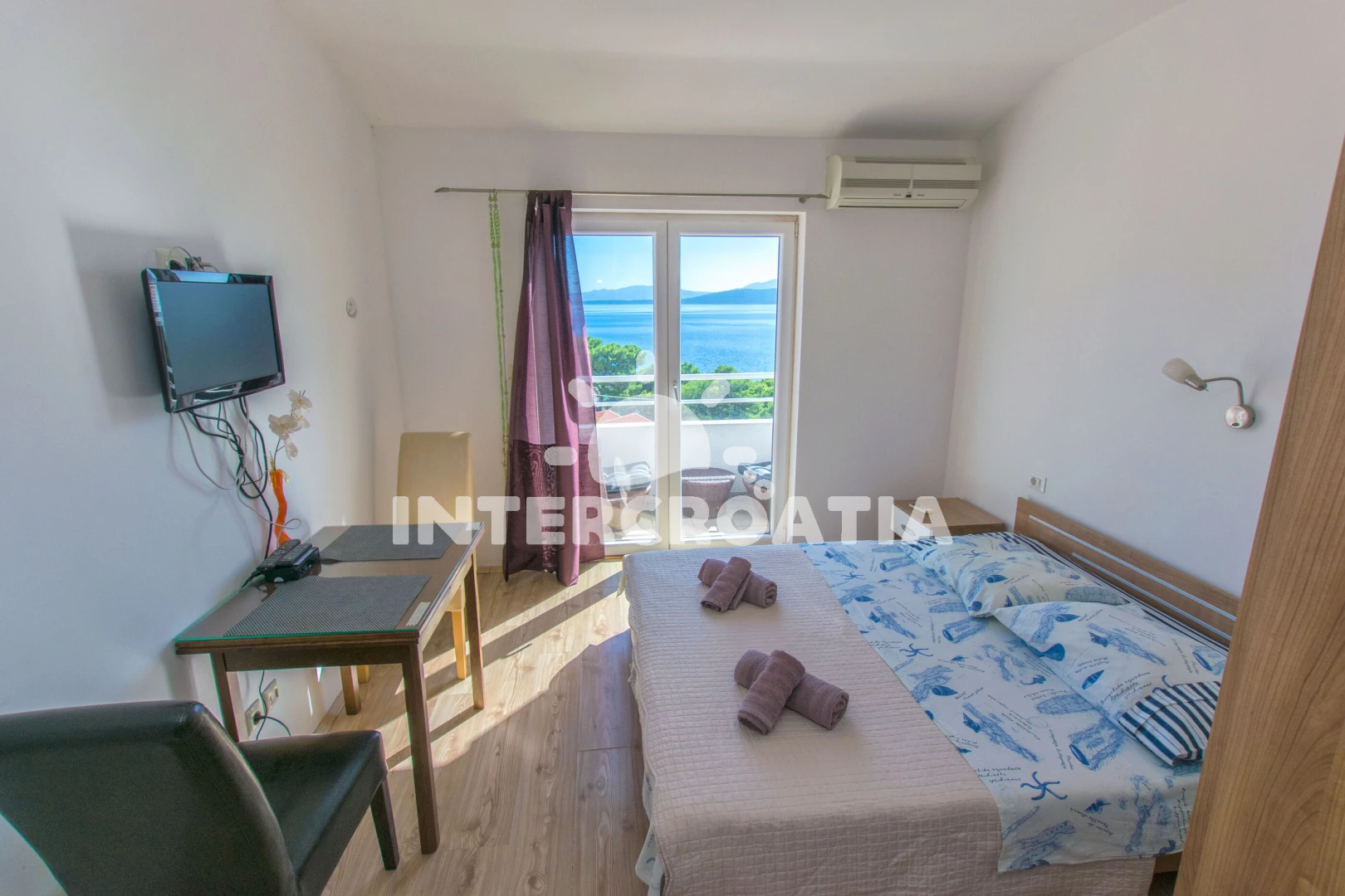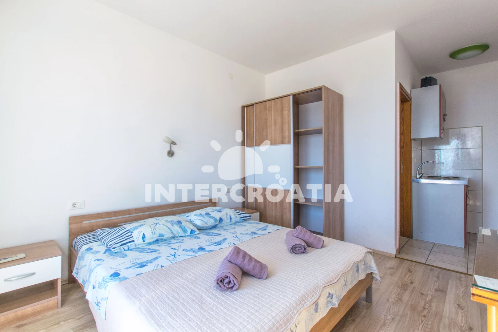 Apartmán (18 m2) s balkonem, a výhledem na moře. Nachází se ve 2. patře objektu. Apartmán má 1 ložnici a je vhodný pro až 2 osoby. Kuchyňská linka je vybavena varnou deskou, kávovarem, rychlovarnou konvicí, nádobím, lednicí. K dispozici televize, žehlička. Ložnice s dvoulůžkem. Koupelna se sprchovým koutem, umyvadlem, WC.