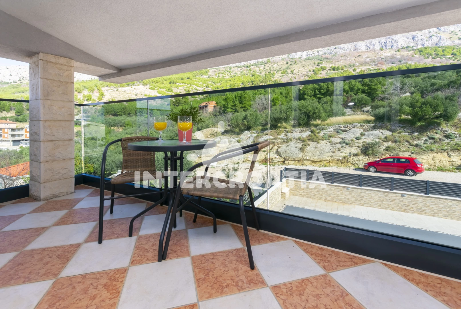 Vzdálenosti: Moře 180 m, pláž 260 m (oblázky), restaurace 250 m, bar 250 m, veřejná doprava 350 m, supermarket 350 m, centrum 1 km, potápění 1 km, banka 2,2 km, ambulance 2,2 km, pošta 2,2 km, lékárna 2,2 km, směnárna 2,2 km, půjčovna motorových člunů 2,2 km, čerpací stanice 2,5 km, půjčovna kol 7,2 km, tenisové kurty 7,5 km, trajekt (Split) 20 km, diskotéka 20 km, letiště (Split) 38 km,
