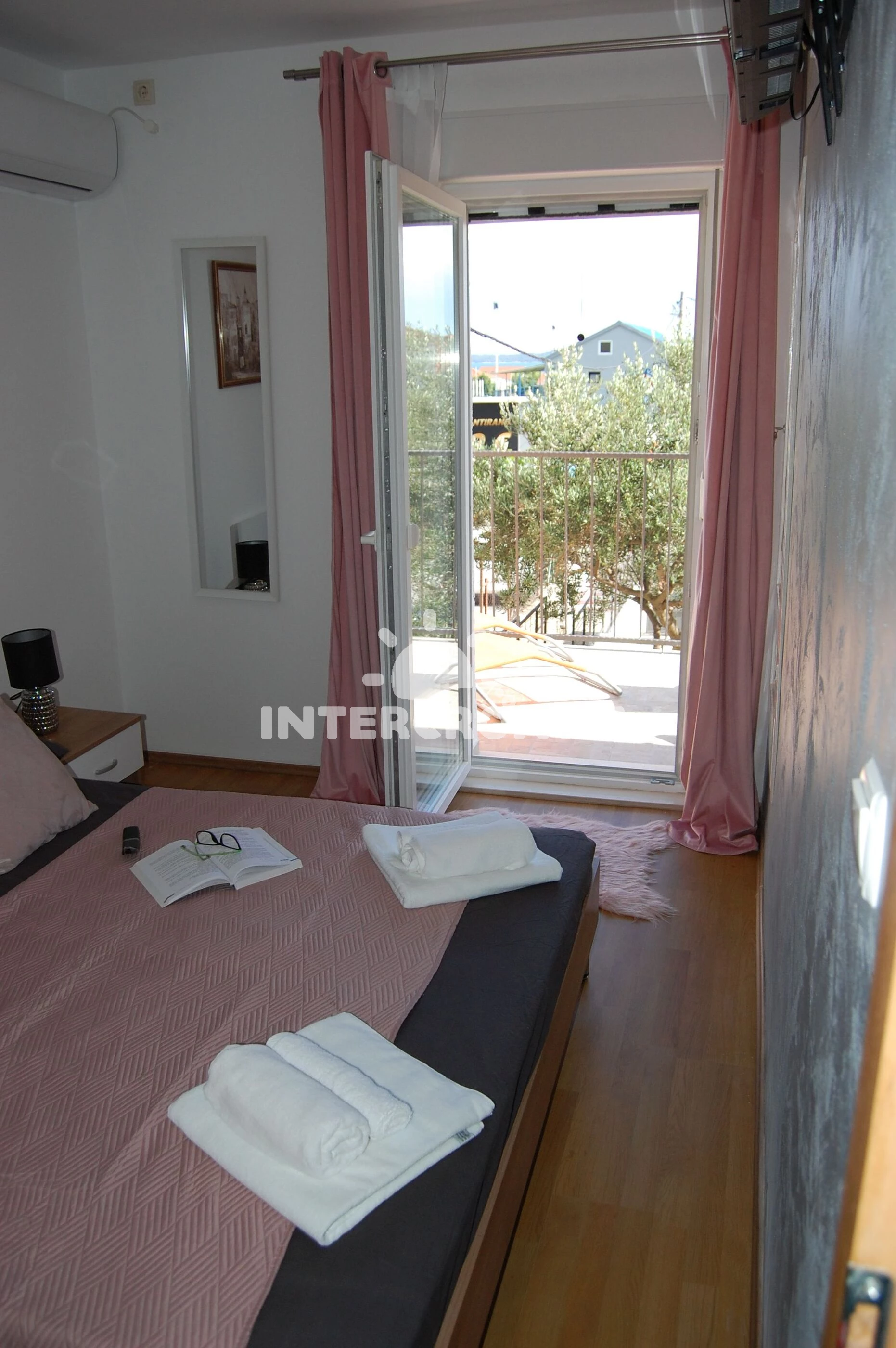 Vzdálenosti: Moře 100 m, pláž 100 m (oblázky), veřejná doprava 10 m, centrum 100 m, supermarket 100 m, restaurace 100 m, bar 100 m, banka 100 m, pošta 400 m, lékárna 400 m, ambulance 400 m, čerpací stanice 1 km, letiště (Split) 5 km, muzeum 6 km, diskotéka 6 km, trajekt (Split) 15 km, park Plitvice 64 km,