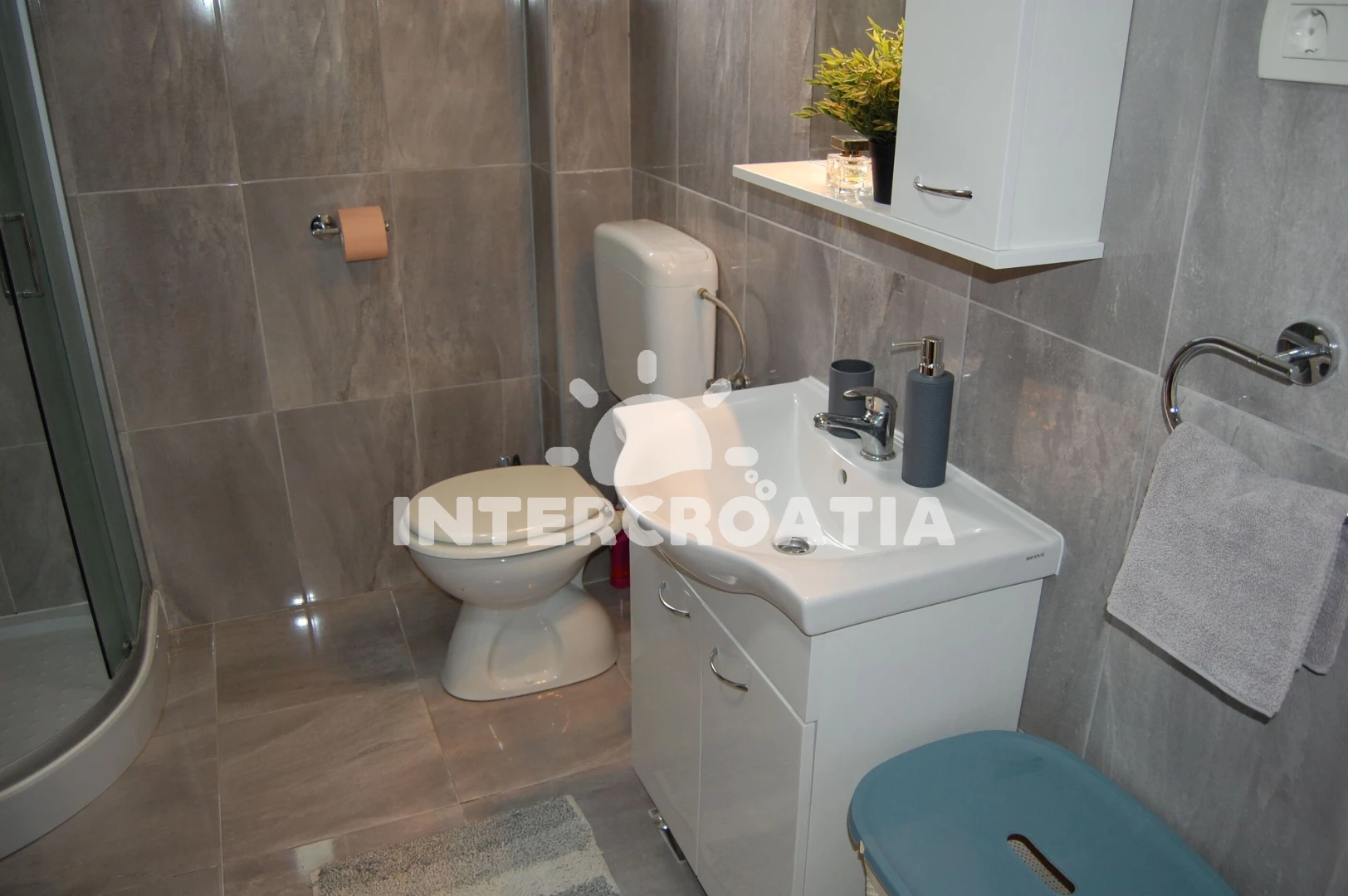 Apartmán (60 m2) s balkonem, s terasou. Nachází se ve dvou patrech objektu. Apartmán má 2 ložnice a je vhodný pro až 5 osob. Kuchyňská linka je vybavena varnou deskou, troubou, kávovarem, toustovačem, myčkou na nádobí, mikrovlnnou troubou, rychlovarnou konvicí, nádobím, lednicí, mrazákem. V obývací místnosti je rozložitelná pohovka (extra lůžko pro 1 osobu). K dispozici televize, žehlička. První ložnice s dvoulůžkem. Druhá ložnice s dvoulůžkem. Koupelna se sprchovým koutem, umyvadlem, WC.