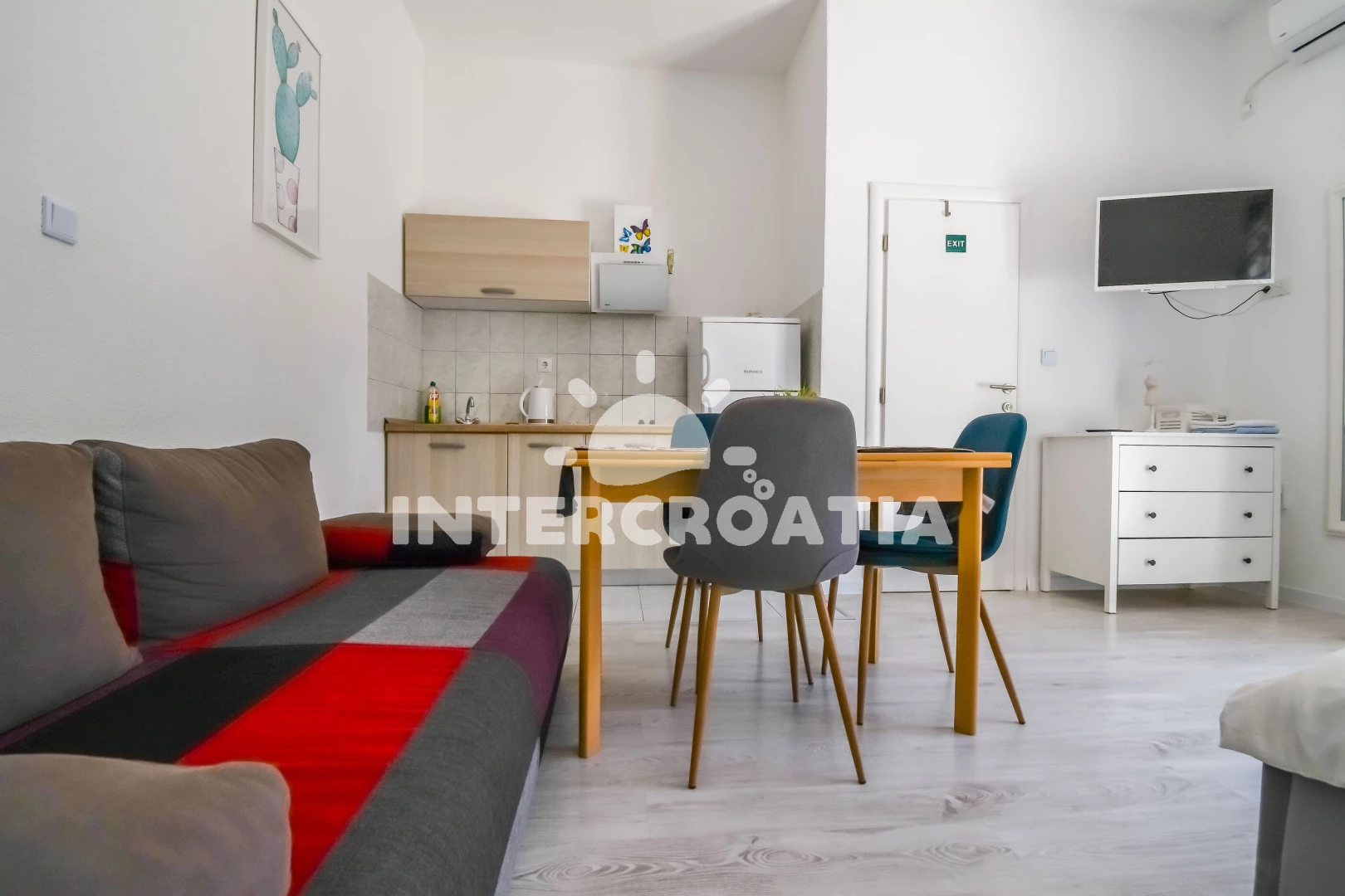 Apartmán se nachází 300 m od moře a pláže. Pláž je oblázková. U objektu je k dispozici společná zahrada s posezením a grilem.