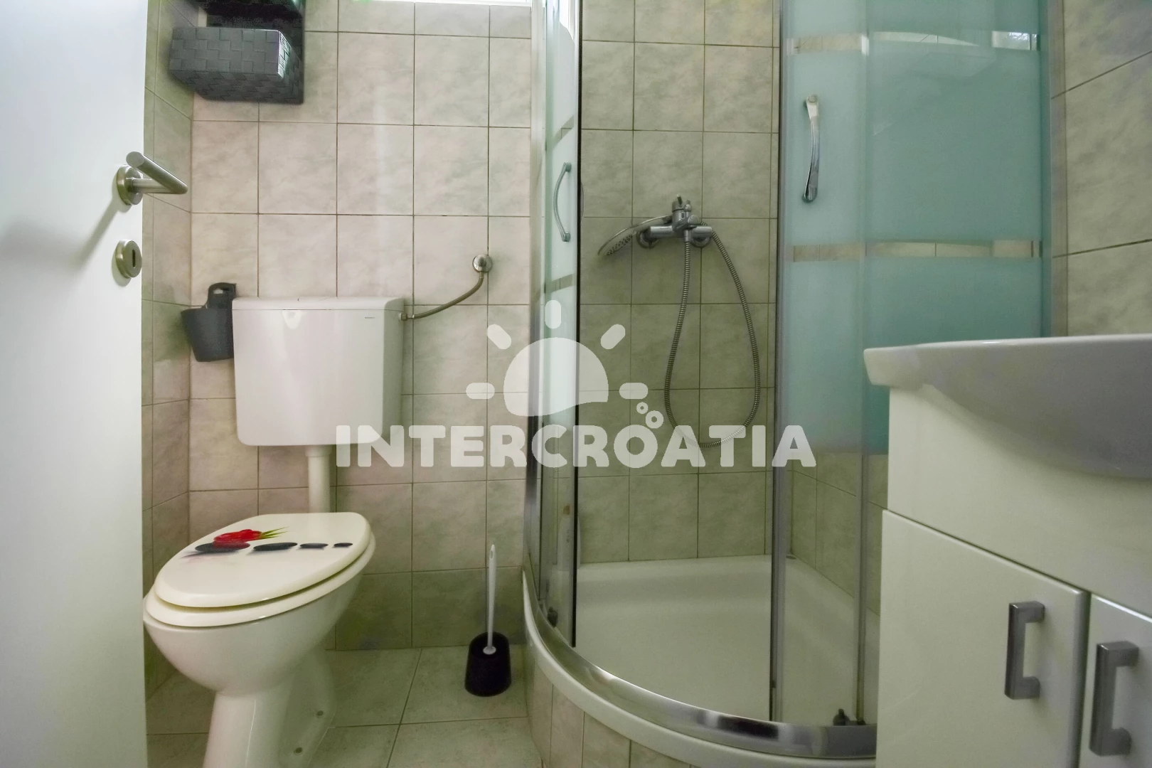 Vzdálenosti: Moře 300 m, pláž 300 m (oblázky), supermarket 100 m, bar 200 m, restaurace 200 m, centrum 300 m, lékárna 300 m, ambulance 1 km, čerpací stanice 1 km, banka 2 km, pošta 2 km, letiště (Split) 3 km, marina 5 km, diskotéka 5 km, trajekt (Split) 20 km,