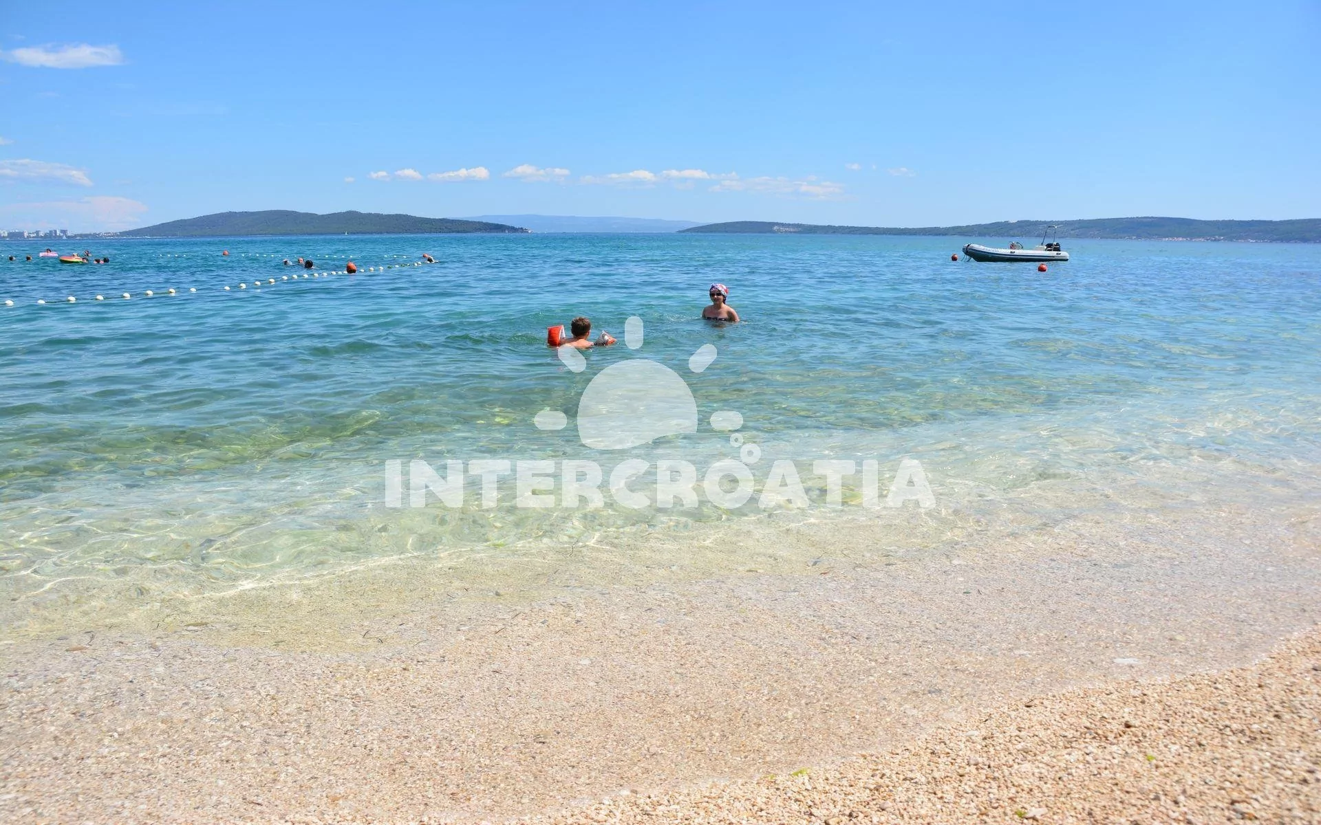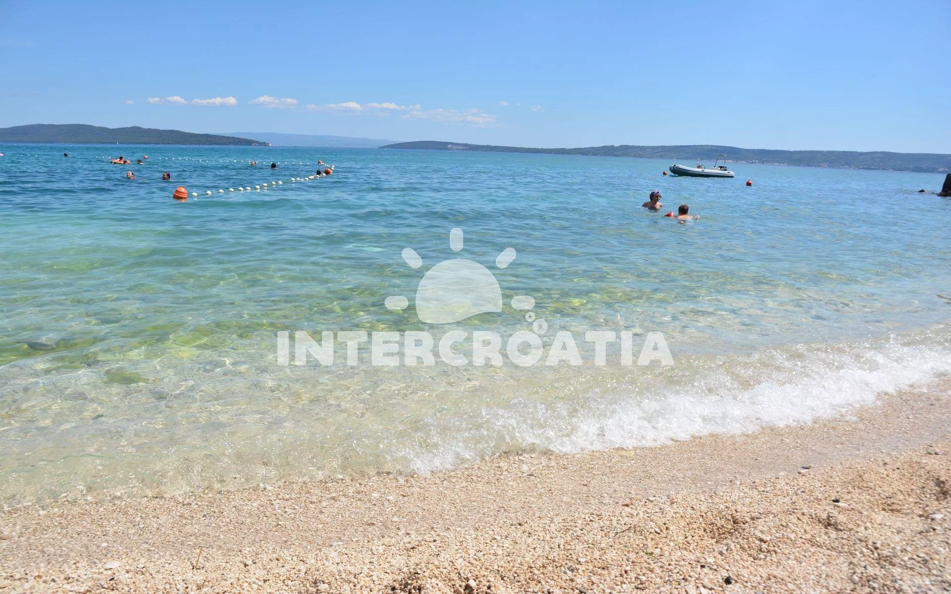 Ve Střední Dalmácii, 22 km severozápadně od chorvatského letoviska Split a 10 km jihovýchodně od lázeňského města Trogir. Apartmán leží téměř u pláže (50 m).