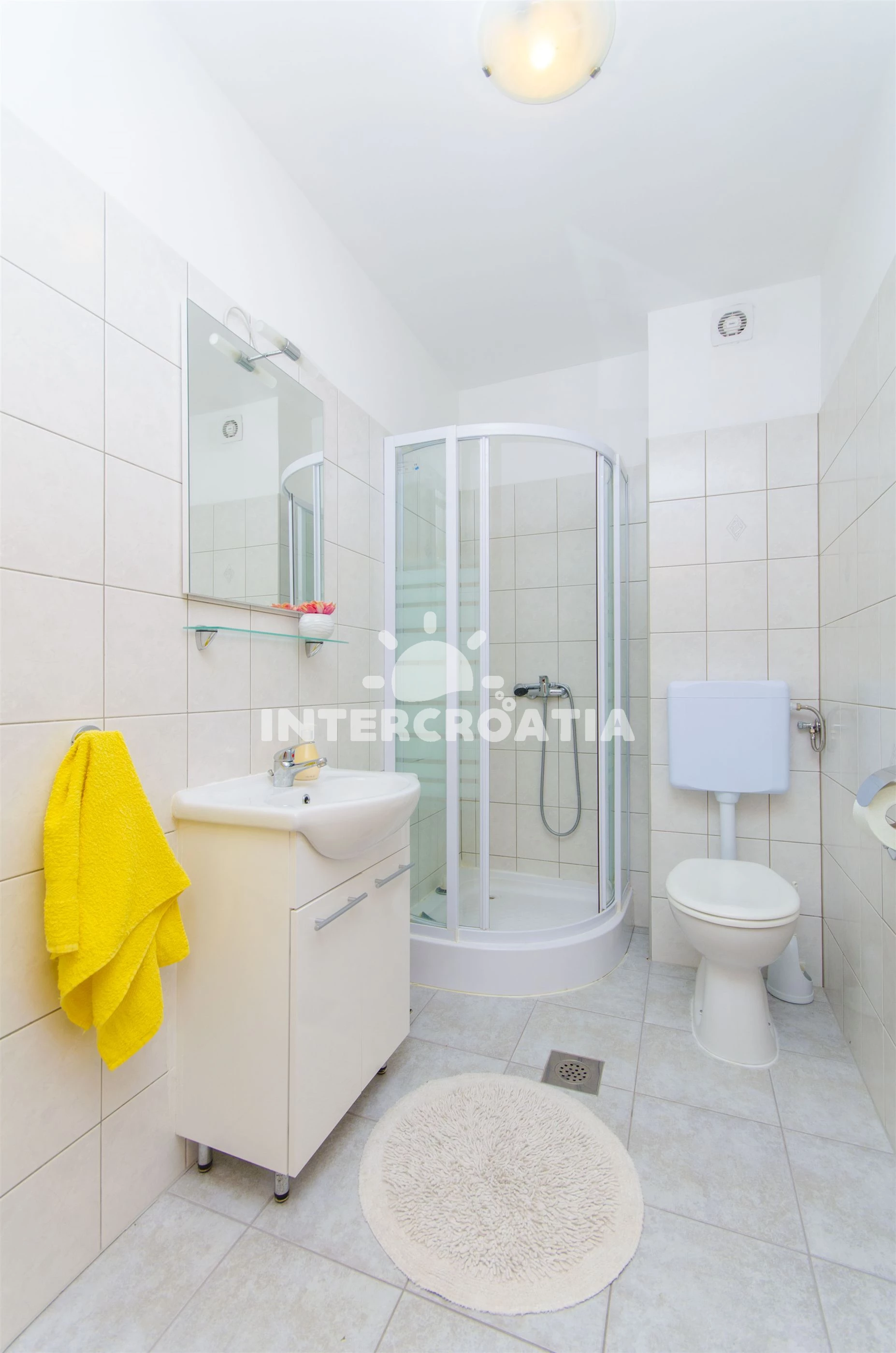Vzdálenosti: Moře 20 m, pláž 30 m (oblázky), bar 20 m, restaurace 250 m, supermarket 300 m, centrum 400 m, veřejná doprava 450 m, pošta 600 m, směnárna 600 m, banka 850 m, tenisové kurty 900 m, lékárna 900 m, ambulance 2 km, potápění 2 km, čerpací stanice 3 km, půjčovna kol 3 km, letiště (Split) 3 km, půjčovna motorových člunů 3 km, muzeum 3,5 km, marina 6,5 km, diskotéka 9 km, trajekt (Split) 20 km,