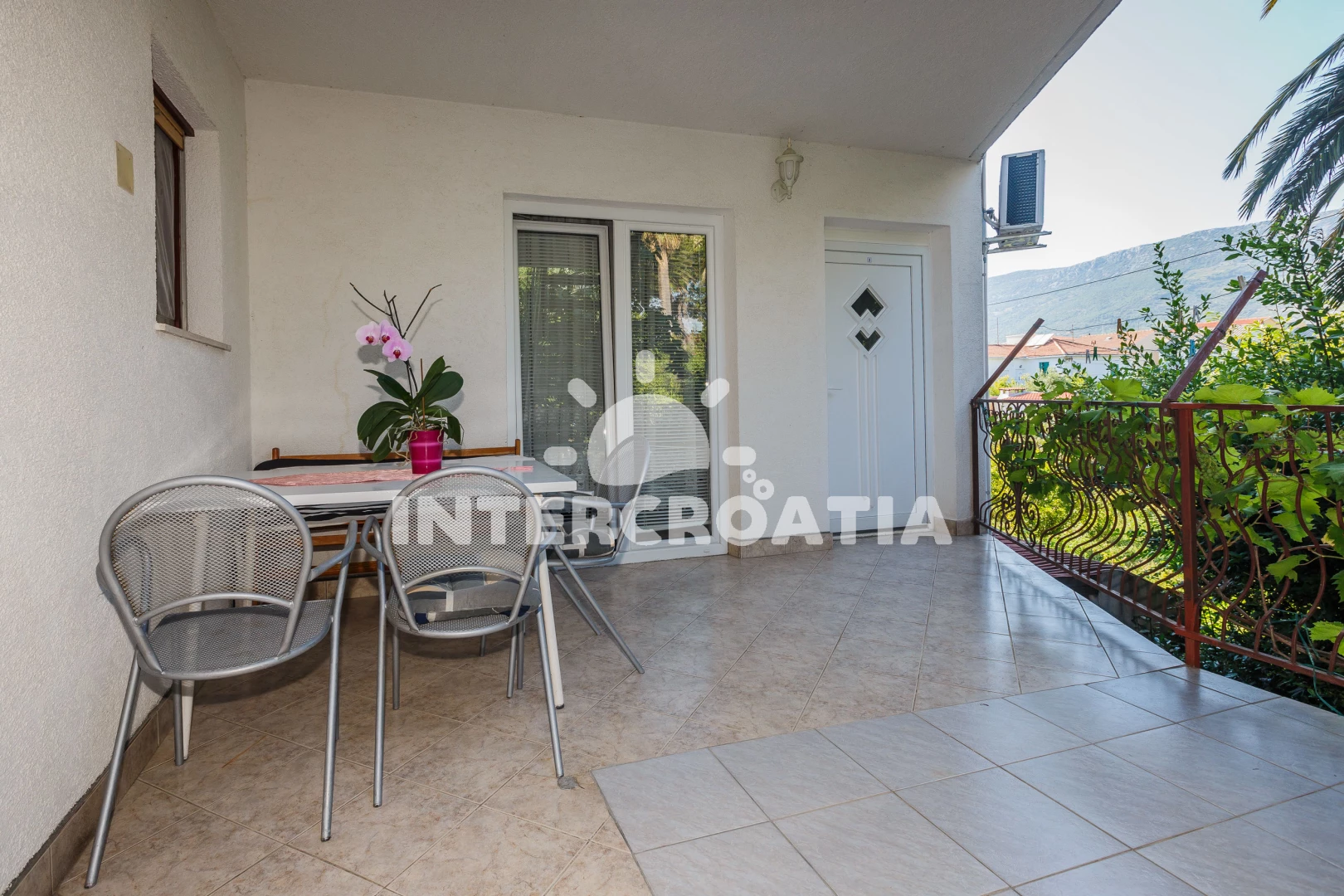Vzdálenosti: Moře 10 m, pláž 20 m (písčitá, skalnatá, oblázková, větší kamení a betonové desky), veřejná doprava 200 m, ambulance 350 m, lékárna 350 m, supermarket 400 m, bar 460 m, centrum 500 m, restaurace 800 m, pošta 800 m, banka 800 m, směnárna 1,3 km, muzeum 2,8 km, čerpací stanice 3,2 km, letiště (Split) 7,9 km, trajekt (Split) 15,7 km,