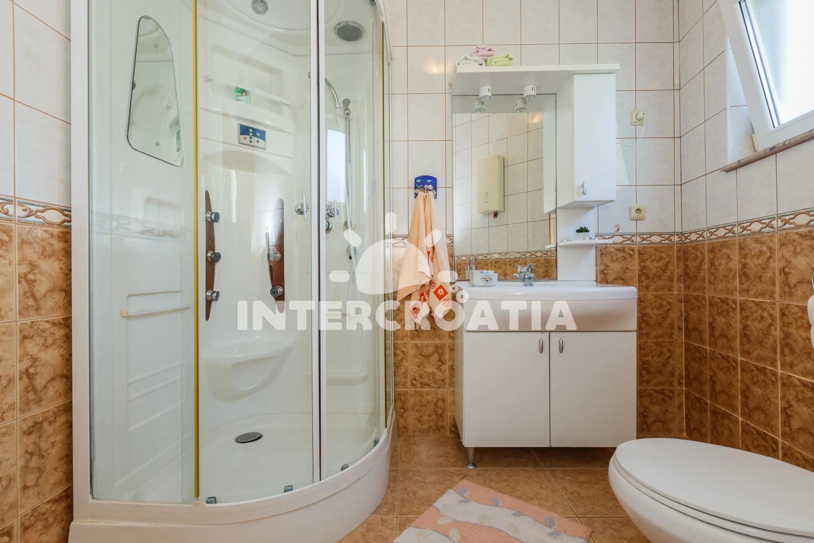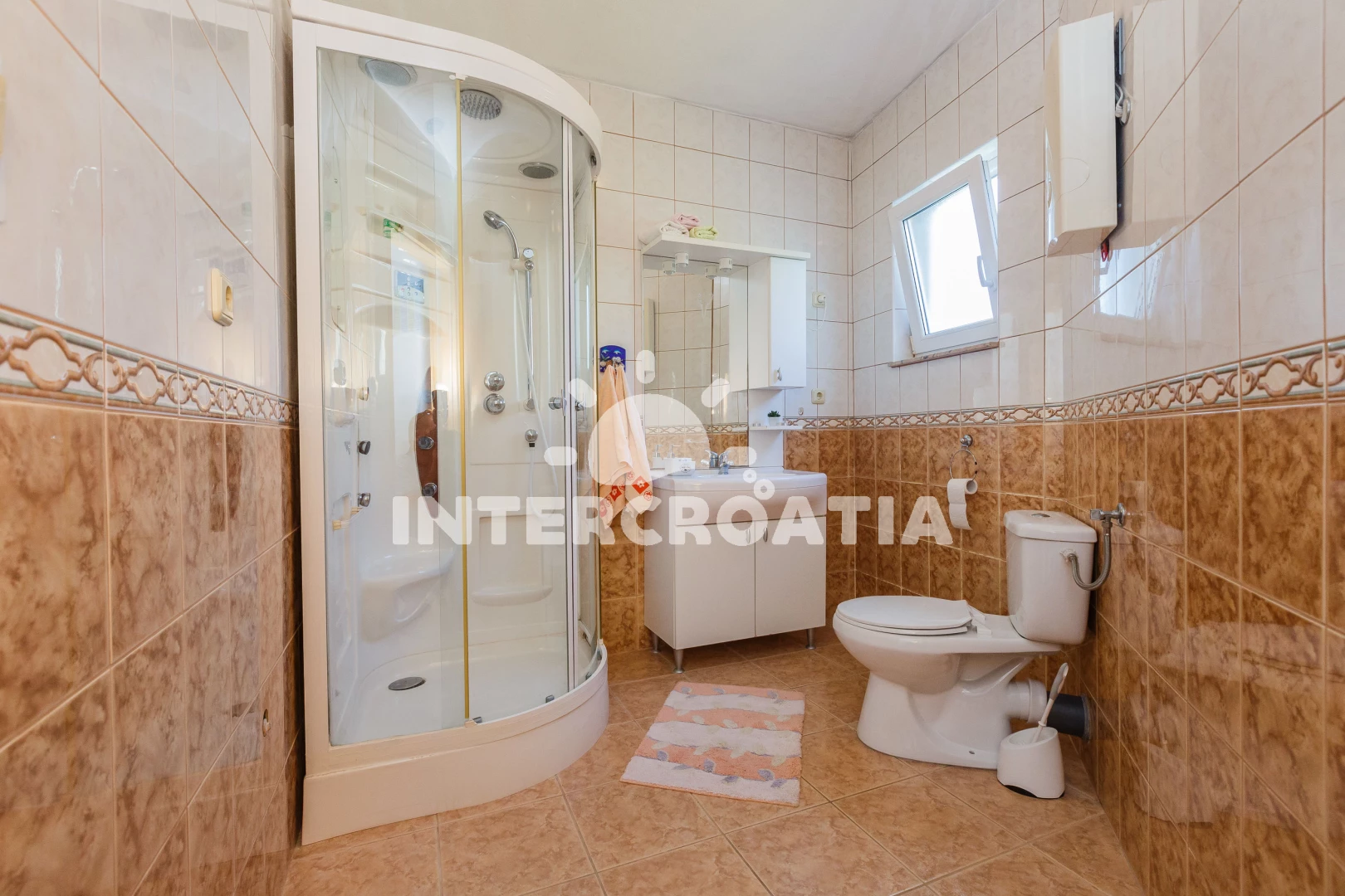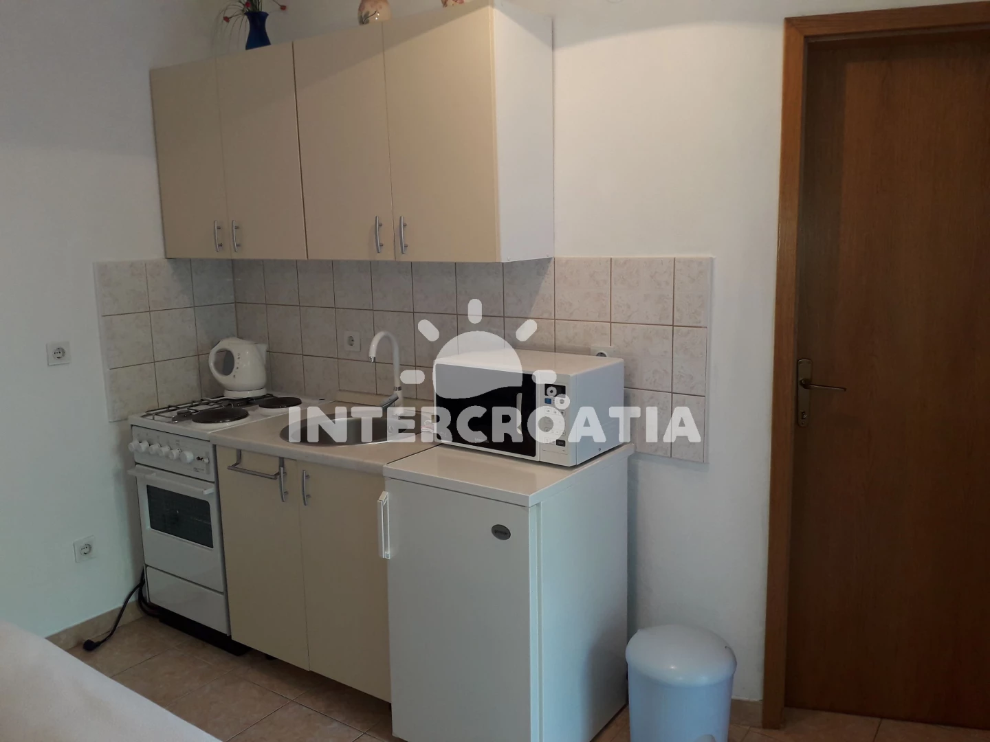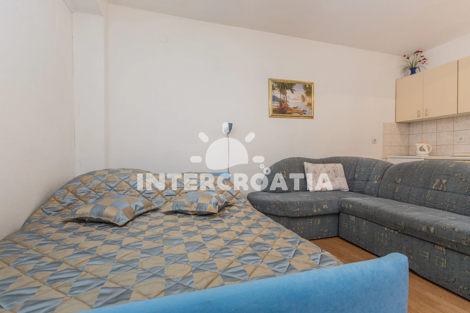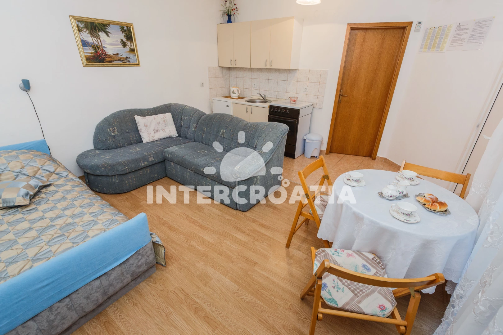 Apartmán se nachází 20 m od moře a pláže. Pláž je písčitá, skalnatá, oblázková, větší kamení a betonové desky. Parkování je před domem.
