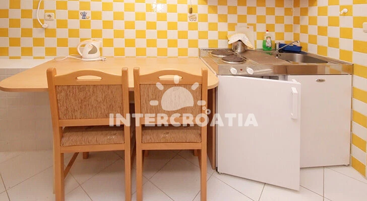 Apartmán (28 m2) typu studio s balkonem. Nachází se v 1. patře objektu. Kuchyňská linka je vybavena varnou deskou, kávovarem, toustovačem, troubou, mikrovlnnou troubou, rychlovarnou konvicí, nádobím, lednicí, mini lednicí, mrazákem. K dispozici dvoulůžko, televize. Koupelna se sprchovým koutem, umyvadlem, fénem a WC.