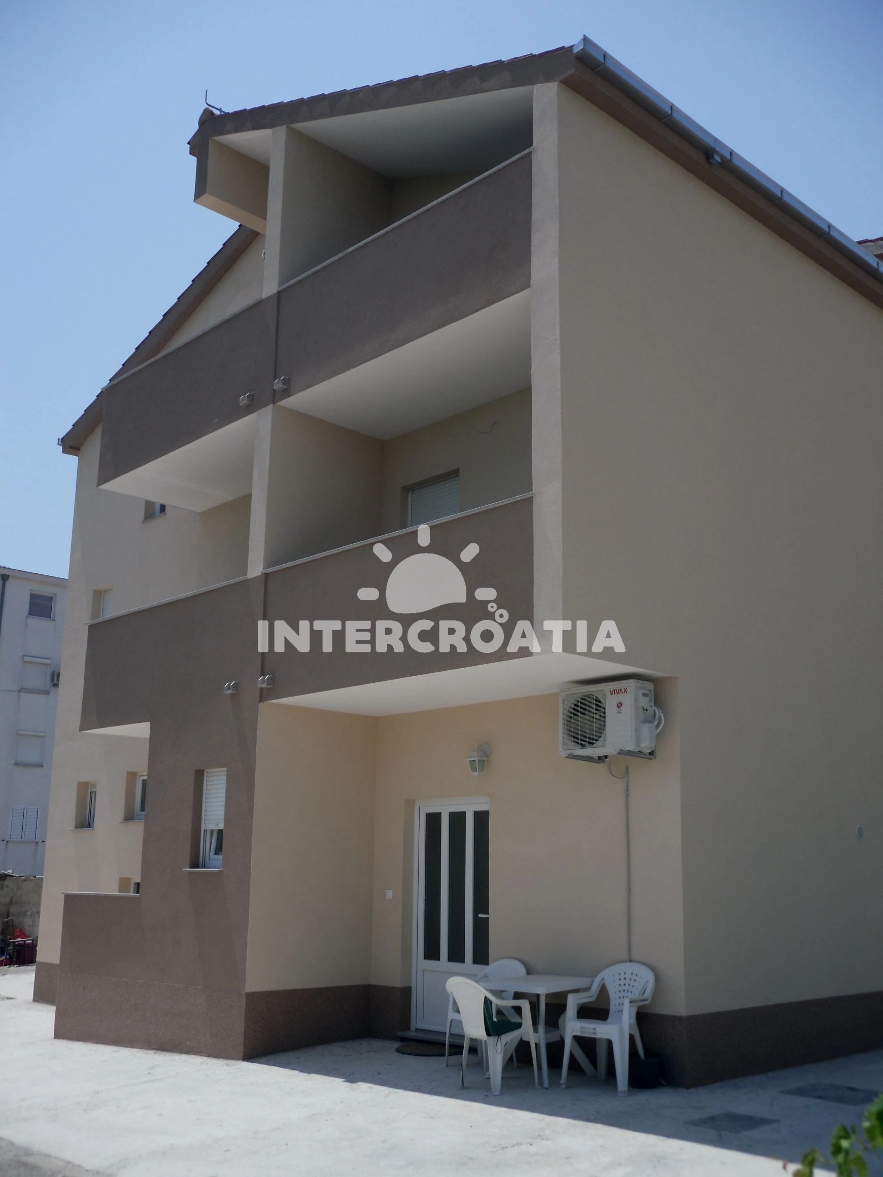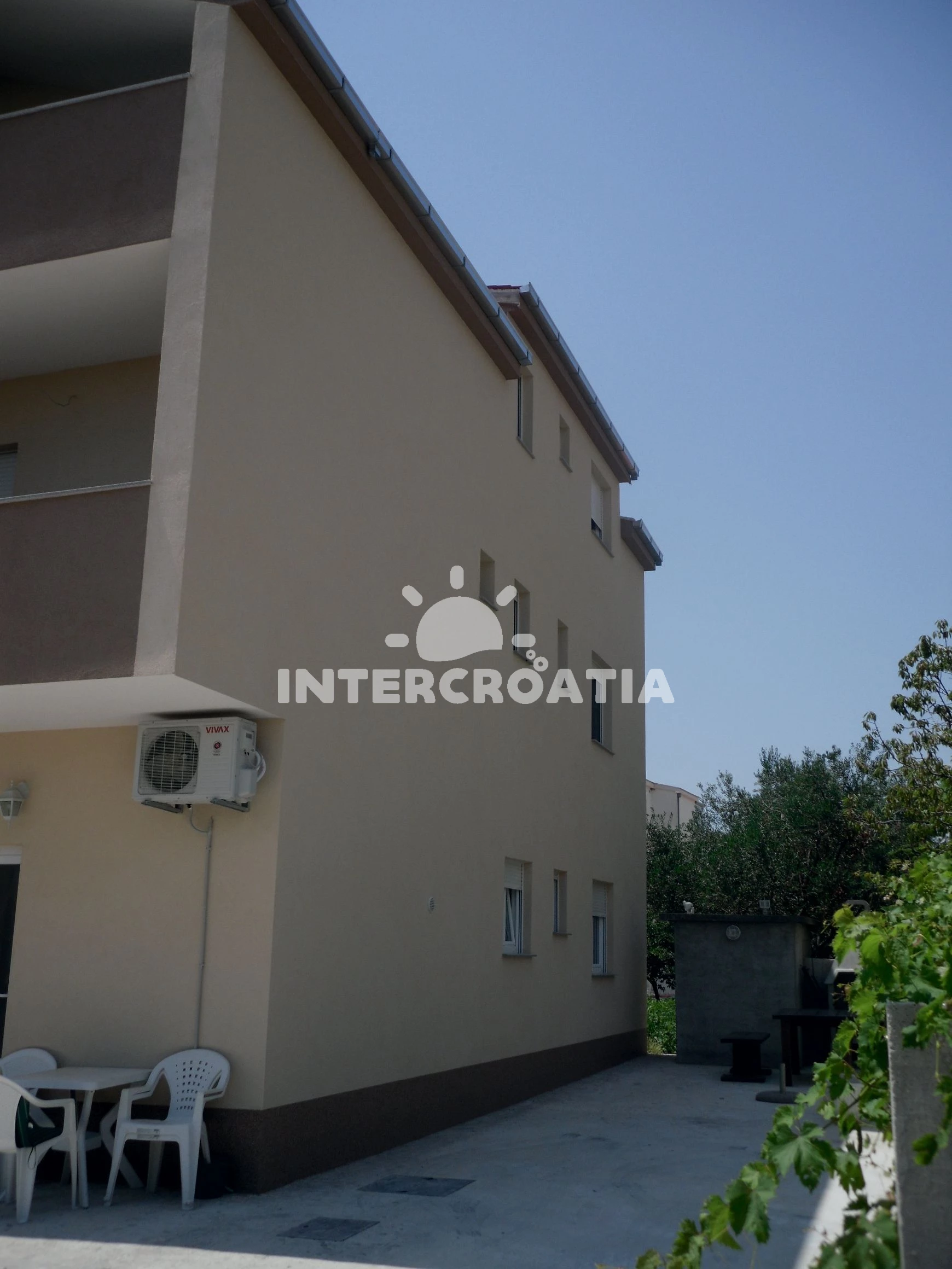 Apartmán se nachází 250 m od moře a pláže. Pláž je oblázková a větší kamení. U objektu je k dispozici společná zahrada s posezením a grilem. Parkování je před domem.