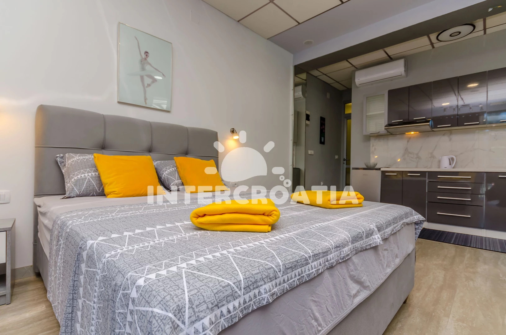 Apartman je lijepo i suvremeno uređen, vrlo čist i uredan. Nalazi se na odličnoj lokaciji blizu svih sadržaja. - Iako prekrasno uređen, apartman ima nekoliko nedostataka: nema ormara za odjeću, u kuhinji nedostaje utičnica za kuhalo za vodu, u kupaonici nema kuke ili vješalice za odložiti ručnike, prekidači za svjetlo nisu kod ulaza već na suprotnom kraju sobe što otežava ulazak i izlazak iz apartmana po mraku.