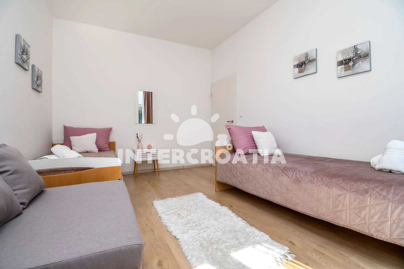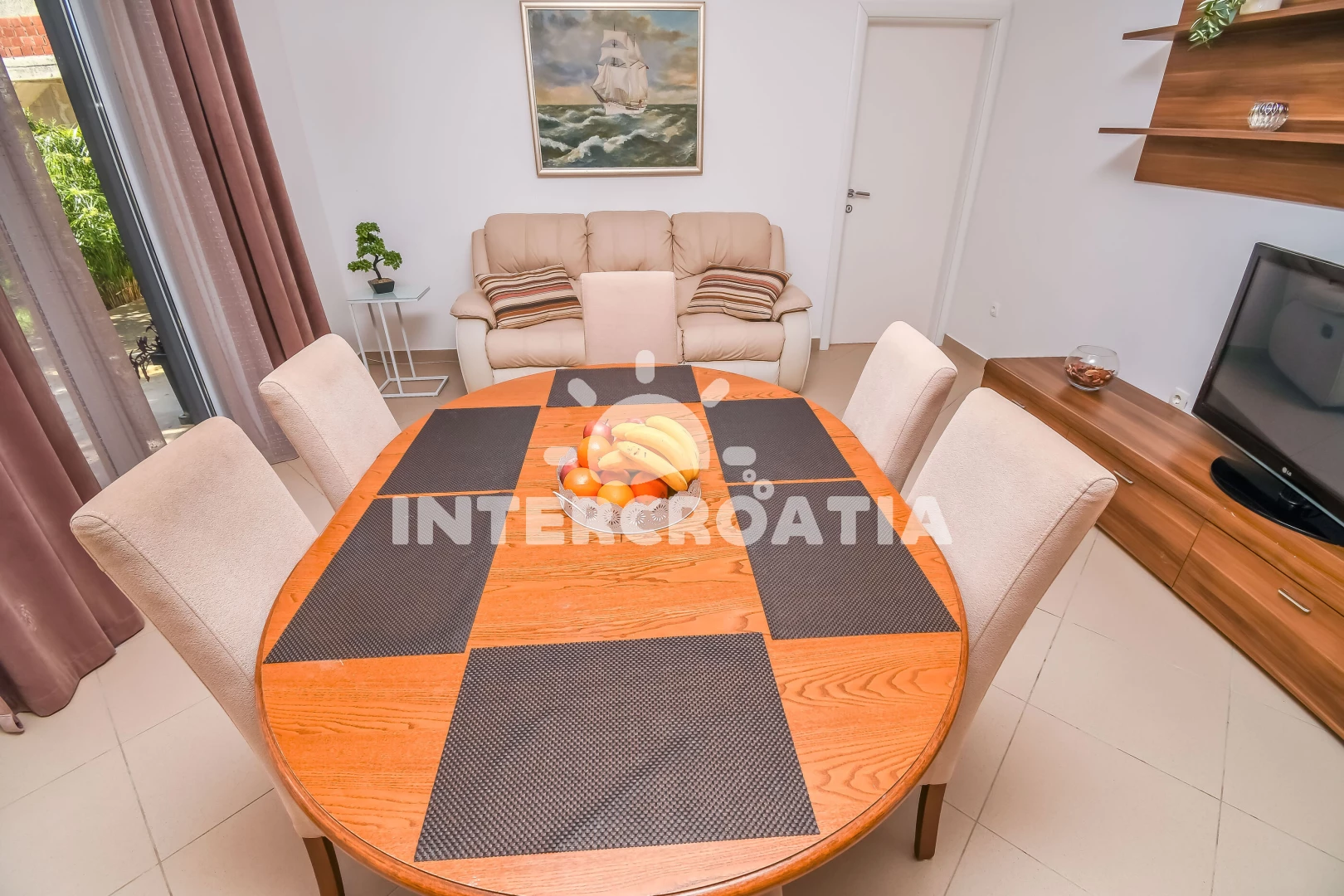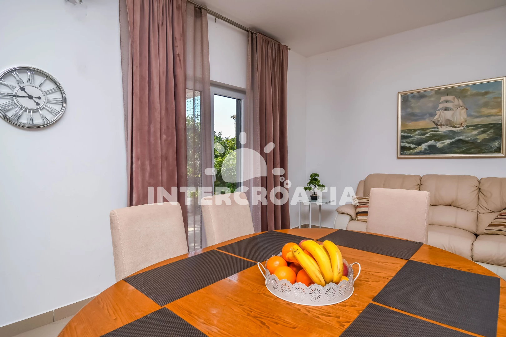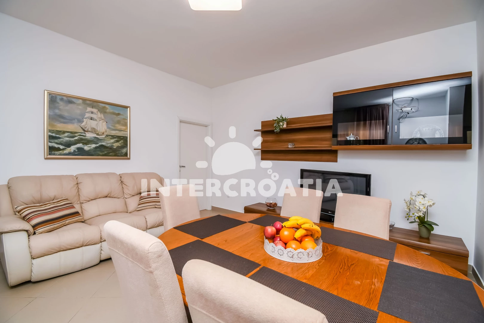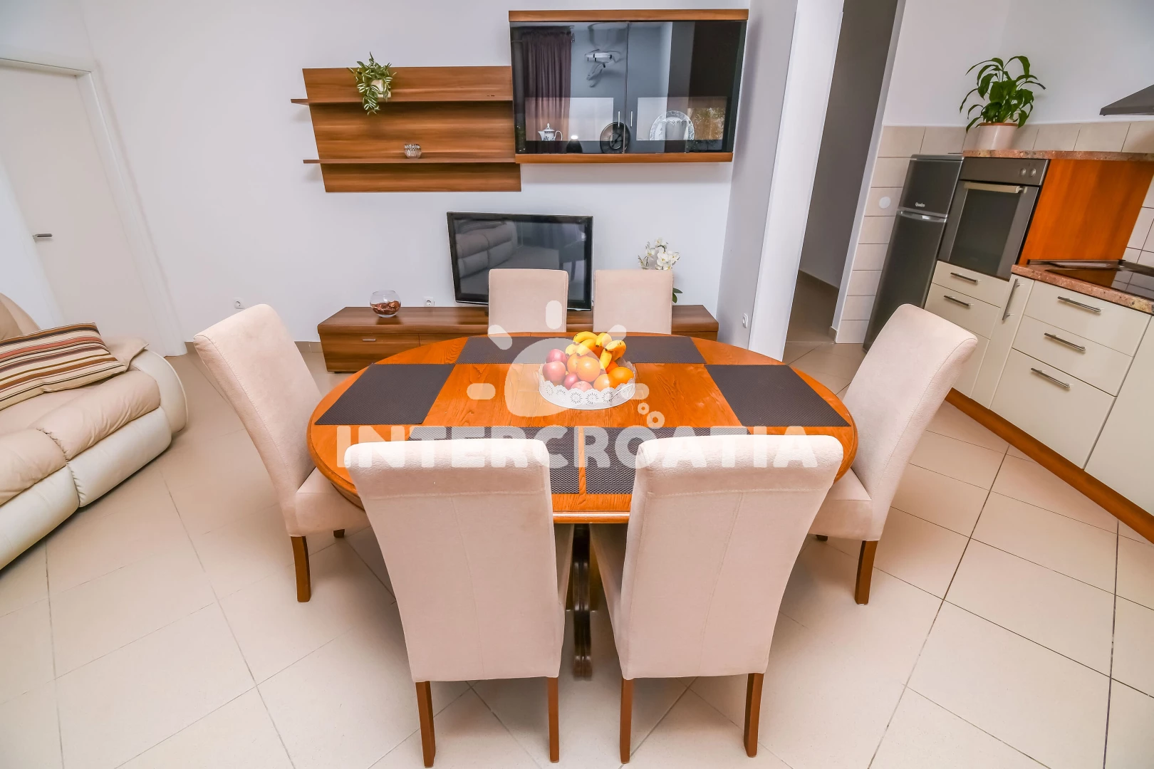 Vzdálenosti: Moře 500 m, pláž 500 m (oblázky), supermarket 100 m, bar 300 m, veřejná doprava 300 m, restaurace 400 m, centrum 500 m, banka 1 km, pošta 1 km, tenisové kurty 2 km, směnárna 2 km, čerpací stanice 2 km, letiště (Split) 3 km, ambulance 3 km, lékárna 3 km, marina 5 km, trajekt (Split) 15 km, park Plitvice 64 km,
