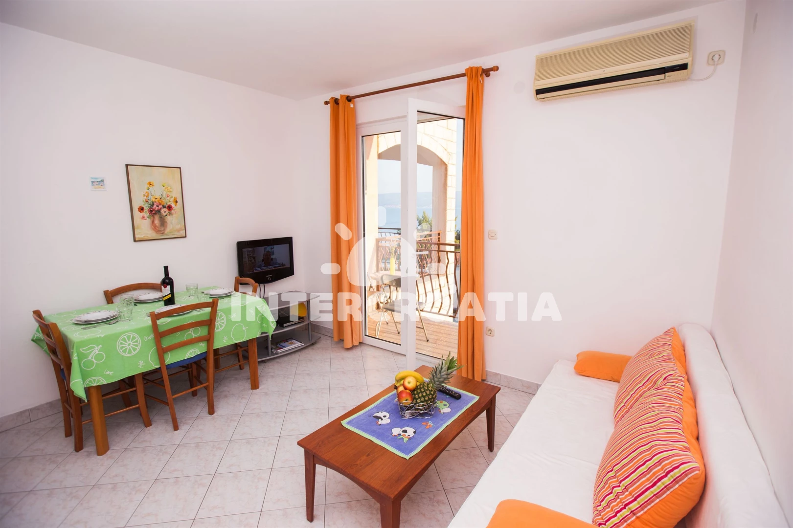 Apartmán (55 m2) s balkonem, a výhledem na moře. Nachází se ve 2. patře objektu. Apartmán má 2 ložnice a je vhodný pro až 6 osob. Kuchyňská linka je vybavena varnou deskou, troubou, kávovarem, mikrovlnnou troubou, nádobím, lednicí. V obývací místnosti je rozložitelná pohovka (extra lůžko pro 2 osoby). K dispozici televize se satelitním programem, žehlička. První ložnice s dvoulůžkem. Druhá ložnice s dvoulůžkem. Koupelna s vanou, umyvadlem, WC.