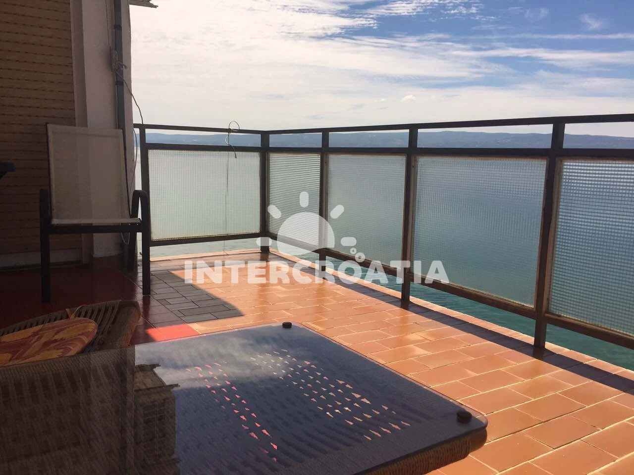 Apartmán se nachází 10 m od moře a pláže. Pláž je oblázková. Apartmán disponuje bazénem s lehátky pro ubytované hosty. U objektu je k dispozici společná zahrada s posezením a grilem.