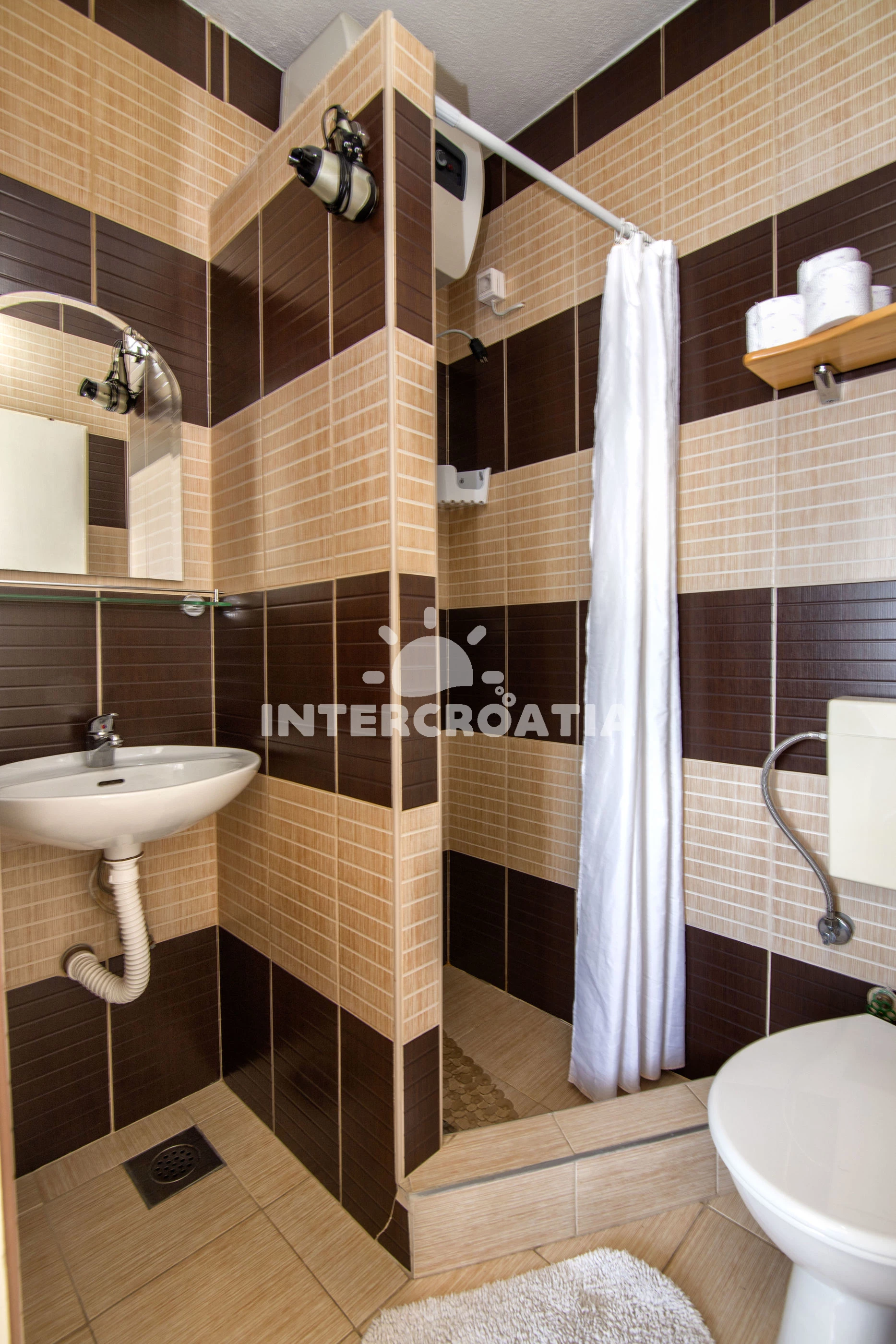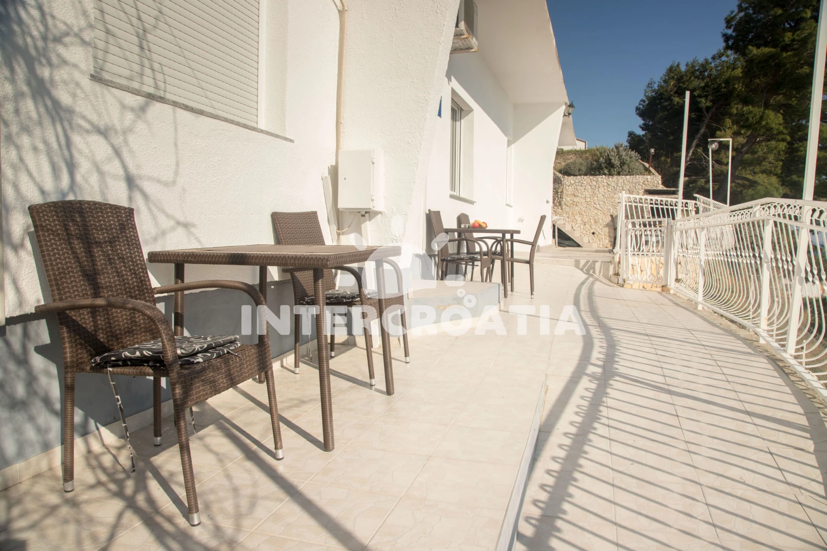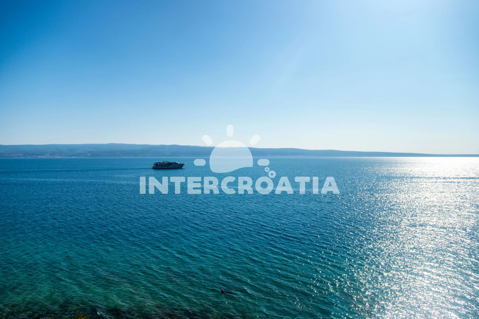 Vzdálenosti: Moře 10 m, pláž 200 m (písčitá, oblázková a skalnatá), veřejná doprava 200 m, supermarket 250 m, bar 500 m, restaurace 1 km, centrum 1,4 km, pošta 1,4 km, lékárna 4 km, ambulance 4 km, směnárna 4 km, čerpací stanice 4 km, banka 10 km, trajekt (Split) 17 km, letiště (AIRPORT_DESTINATION) 33 km,
