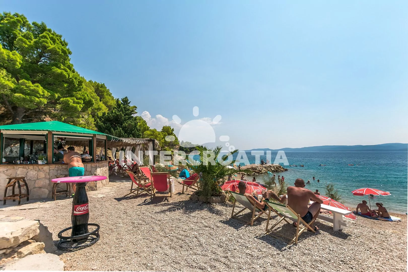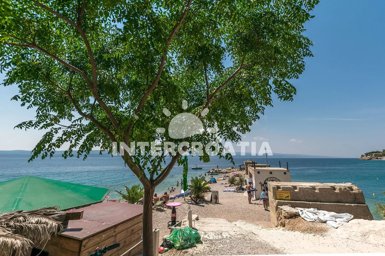 Vzdálenosti: Moře 70 m, pláž (písčitá a oblázková) 200 m, centrum 70 m, market 200 m, pošta 10 km, lékárna 10 km, nemocnice 10 km, restaurace 50 m, muzeum 10 km, směnárna 50 m, banka 10 km, potápěčský klub 200 m, tenisové kurty 10 km, minigolf 15 km, diskotéka 25 km, bar 50 m, čerpací stanice 10 km, veřejná doprava 10 km, trajekt (Split) 45 km, letiště (Split) 65 km.