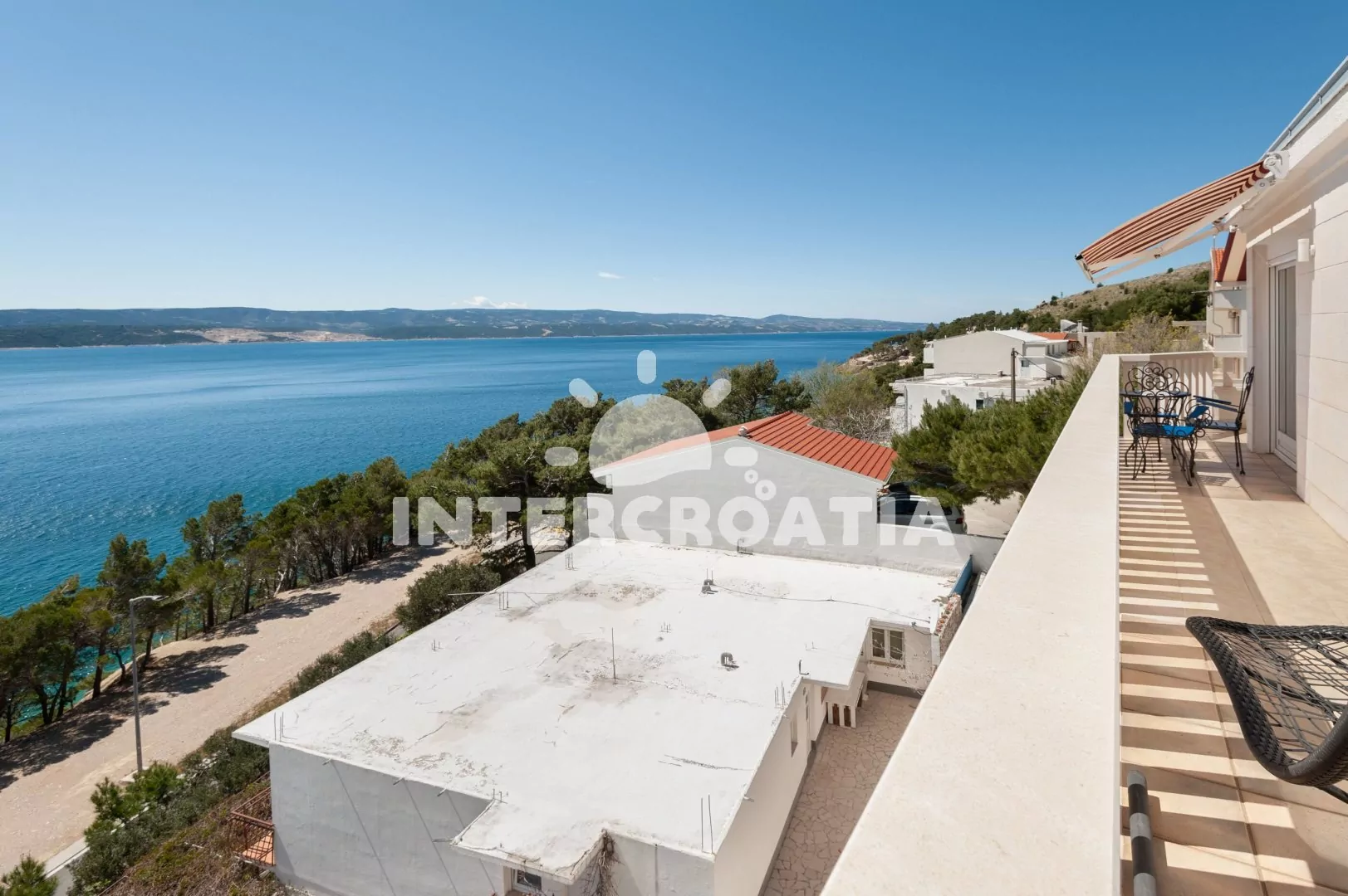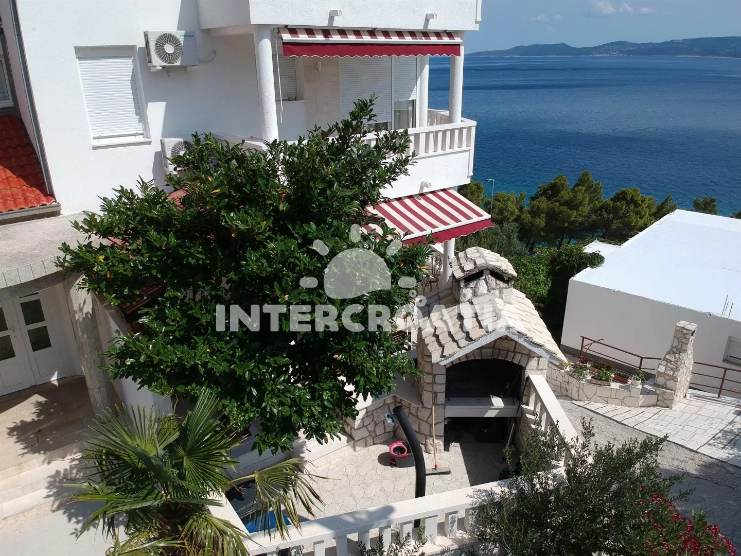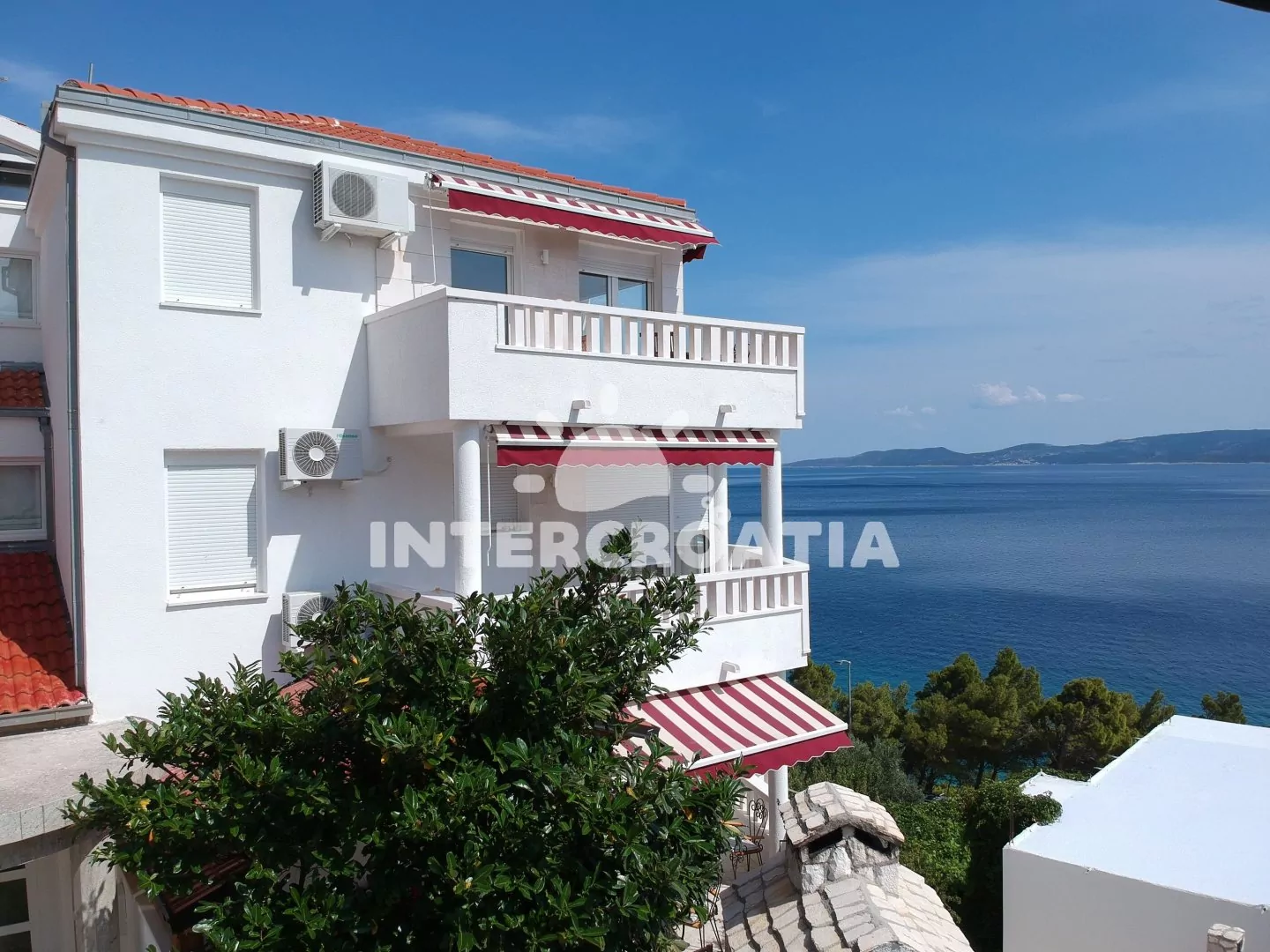 Dvoupatrový apartmánový dům s terasou, výhledem na moře a dobrou dostupností pěšky na pláž.