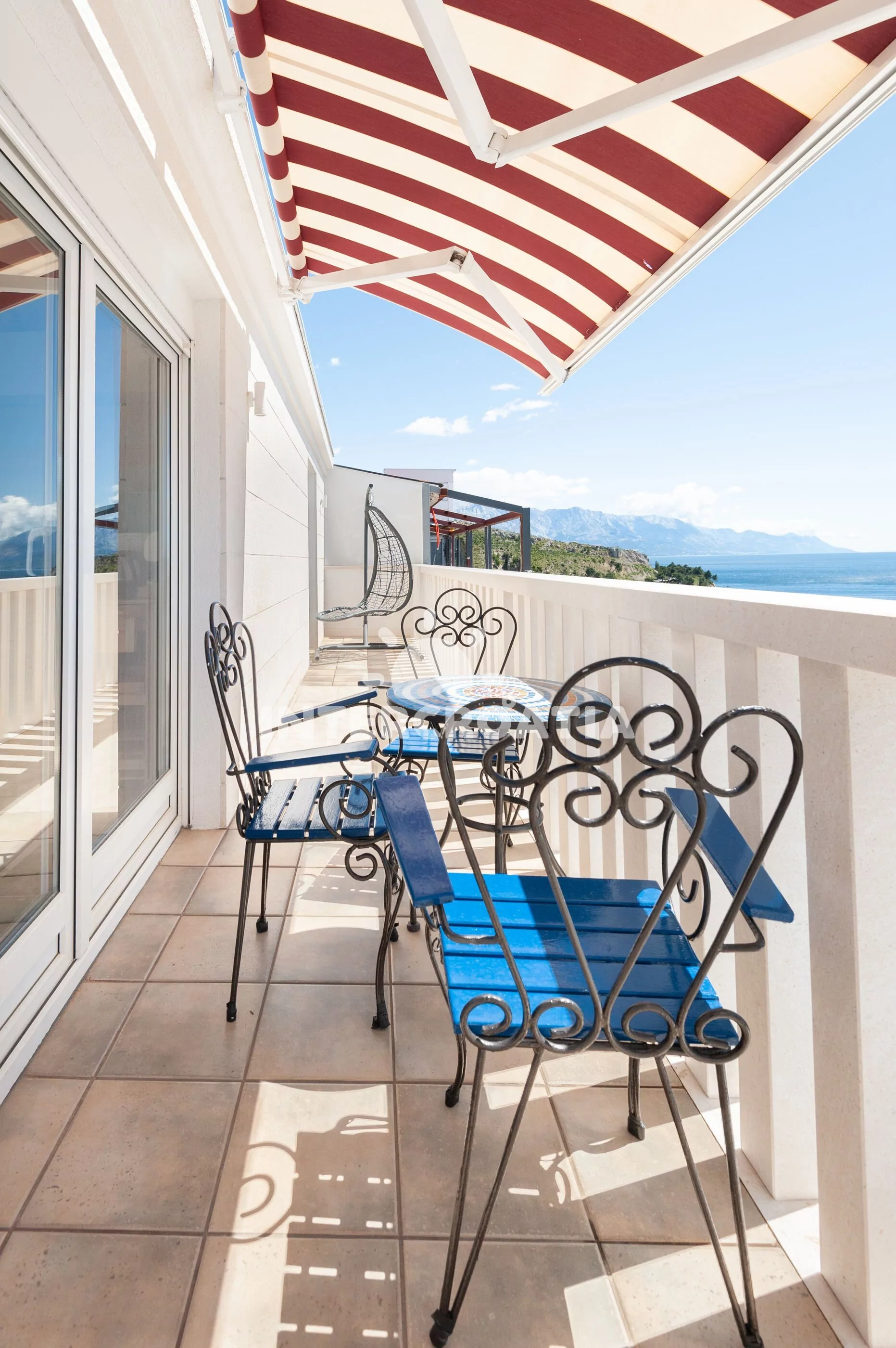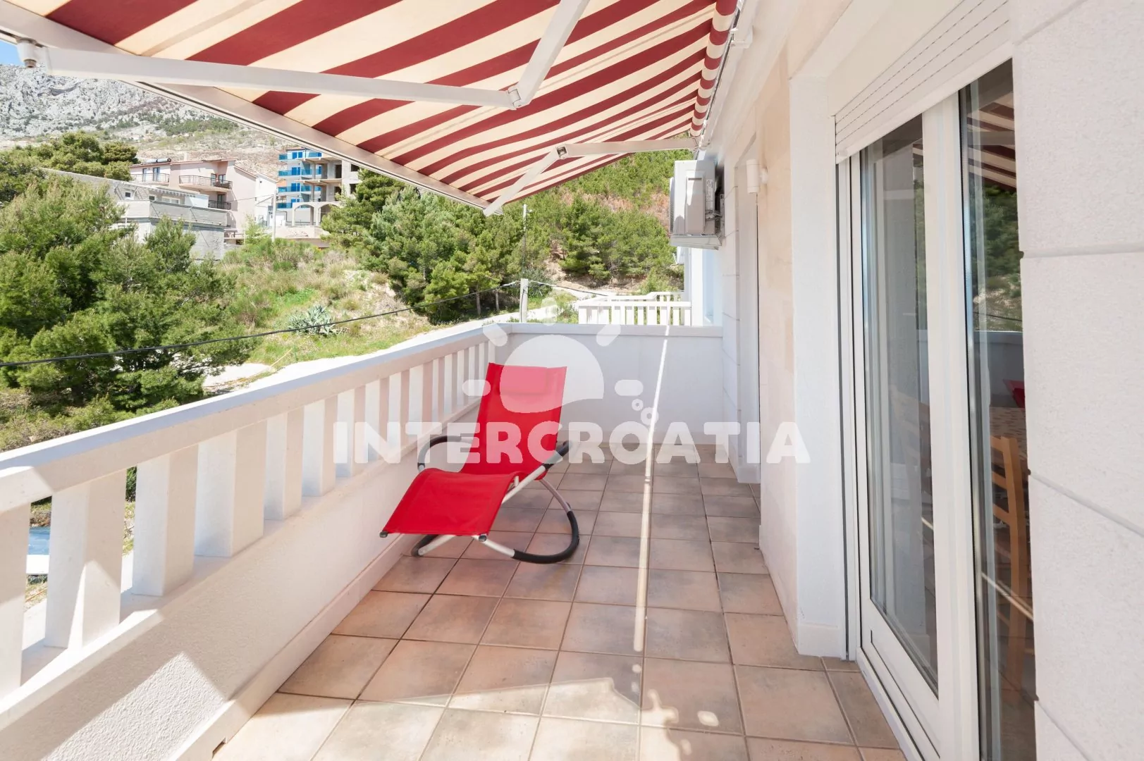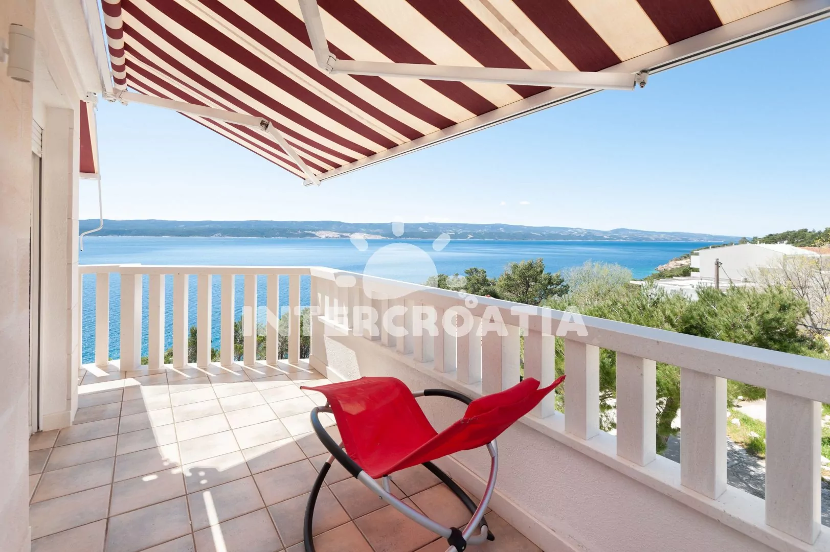 Dvoupatrový apartmánový dům s terasou, výhledem na moře a dobrou dostupností pěšky na pláž.