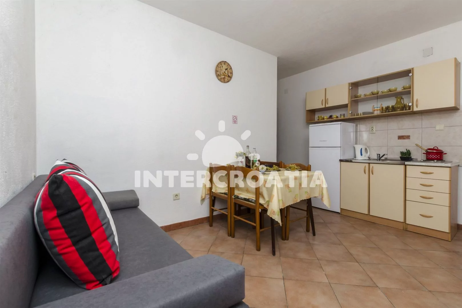 Vzdálenosti: Moře 120 m, pláž (oblázky) 150 m, centrum 600 m, obchod 600 m, pošta 7 km, lékárna 7 km, zdravotní středisko 7 km, restaurace 10 m, směnárna 7 km, banka 7 km, muzeum 7 km, přístav 7 km, kotviště pro čluny 500 m, potápěčský klub 7 km, půjčovna kol 7 km, půjčovna motorových člunů 500 m, tenisový kurt 8 km, venkovní bazén 900 m, diskotéka 20 km, bar 10 m, čerpací stanice 8 km, veřejná doprava 600 m, trajekt 30 km (Split), letiště 45 km (Split), silnice 70 m.
