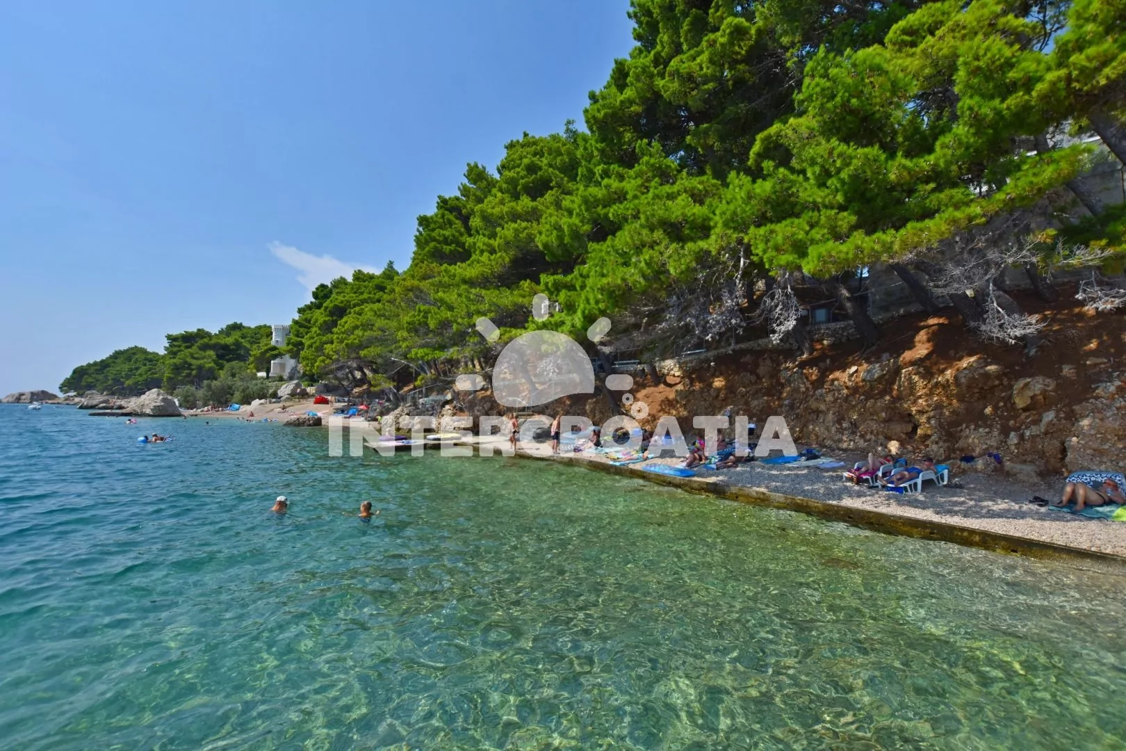 Vzdálenosti: Moře 160 m, pláž (oblázková) 220 m, centrum 80 m, market 80 m, pošta 7 km, lékárna 7 km, nemocnice 7 km, restaurace 80 m, muzeum 7 km, směnárna 7 km, banka 7 km, přístav 7 km, kotviště pro čluny 500 m, potápěčský klub 7 km, půjčovna motorových člunů 500 m, tenisové kurty 7 km, půjčovna kol 7 km, venkovní bazén 250 m, diskotéka 20 km, bar 150 m, čerpací stanice 7 km, veřejná doprava 80 m, trajekt (Split) 25 km, letiště (Split) 45 km.
