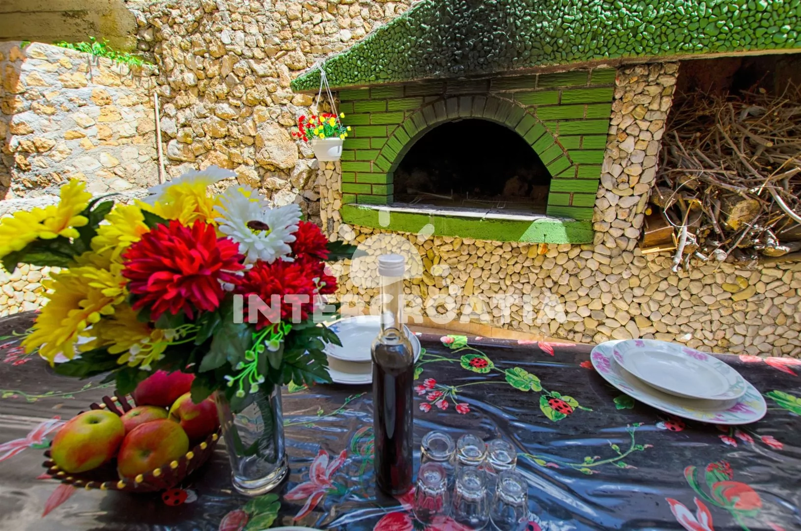 Vzdálenosti: Moře 160 m, pláž (oblázková) 220 m, centrum 80 m, market 80 m, pošta 7 km, lékárna 7 km, nemocnice 7 km, restaurace 80 m, muzeum 7 km, směnárna 7 km, banka 7 km, přístav 7 km, kotviště pro čluny 500 m, potápěčský klub 7 km, půjčovna motorových člunů 500 m, tenisové kurty 7 km, půjčovna kol 7 km, venkovní bazén 250 m, diskotéka 20 km, bar 150 m, čerpací stanice 7 km, veřejná doprava 80 m, trajekt (Split) 25 km, letiště (Split) 45 km.