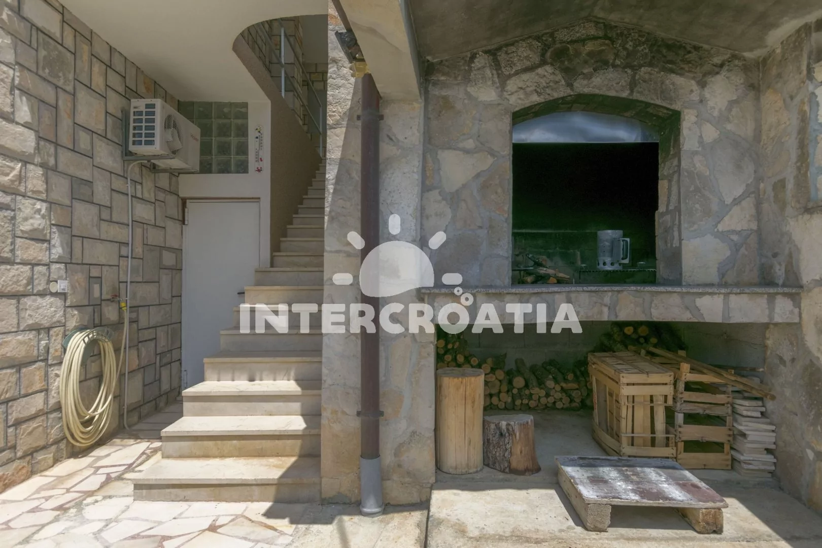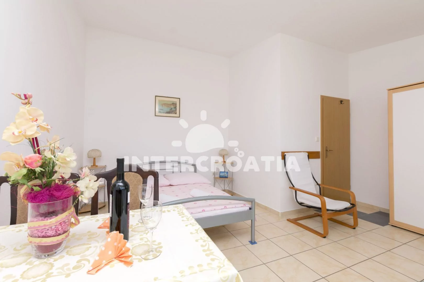 Vzdálenosti: Moře 160 m, pláž 220 m, centrum, restaurace, supermarket, veřejná doprava 80 m, bar 150 m, lékárna, ambulance, čerpací stanice, pošta, banka, muzeum, potápění, tenis, půjčovna kol 7 km, přístav 500 m, diskotéka 20 km, trajekt 25 km, letiště 45 km.