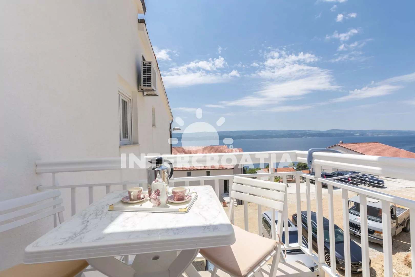 Apartmán typu studio, s výhledem na moře a balkonem s venkovním posezením. Nachází se v druhém patře domu. Kuchyňská linka s elektrickým dvouplotýnkovým sporákem, digestoří, mikrovlnnou troubou,…