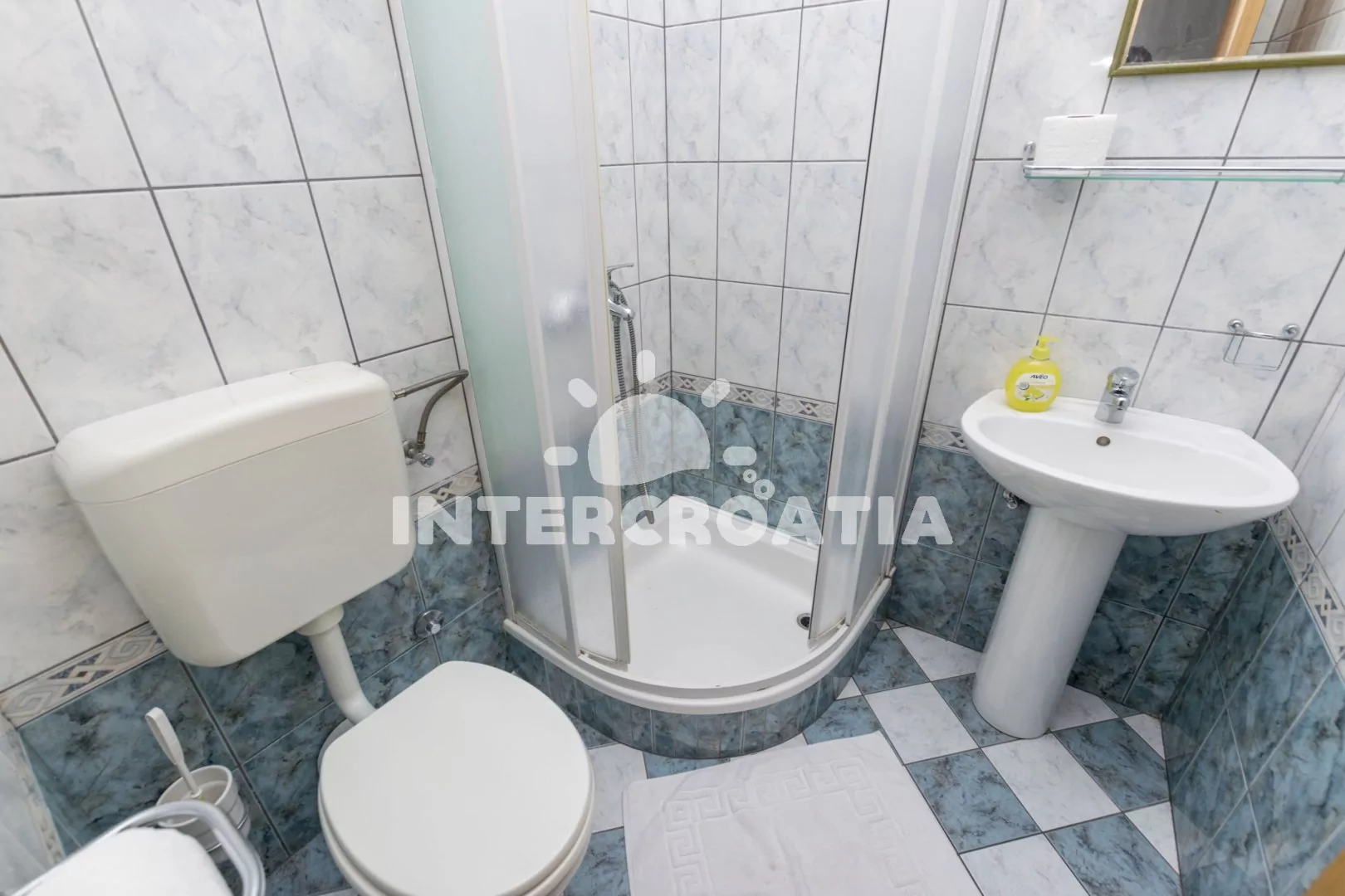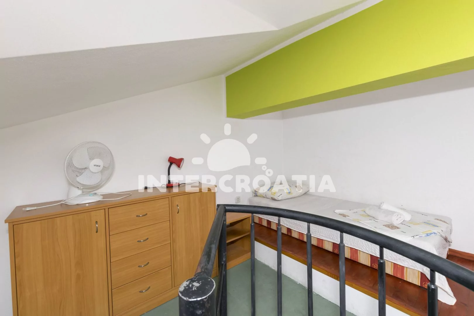 Dvoupatrový apartmán s vlastním balkonem a výhledem na moře je vhodný pro 2 až 4 osoby. Obývací místnost je spojena s kuchyní. Kuchyňská linka je vybavena dvouplotýnkovým sporákem, digestoří, mikrovlnnou troubou, rychlovarnou konvicí, nádobím a lednicí s mrazákem. Obývací místnost s dvoulůžkem, televizí se satelitním programem, klimatizací a vstupem na balkon. V patře jedna přistýlka (extra lůžko pro 1 osobu). Koupelna se sprchovým koutem, umyvadlem a wc. Hostům je k dispozici parkování u objektu, nebo v garáži zdarma.