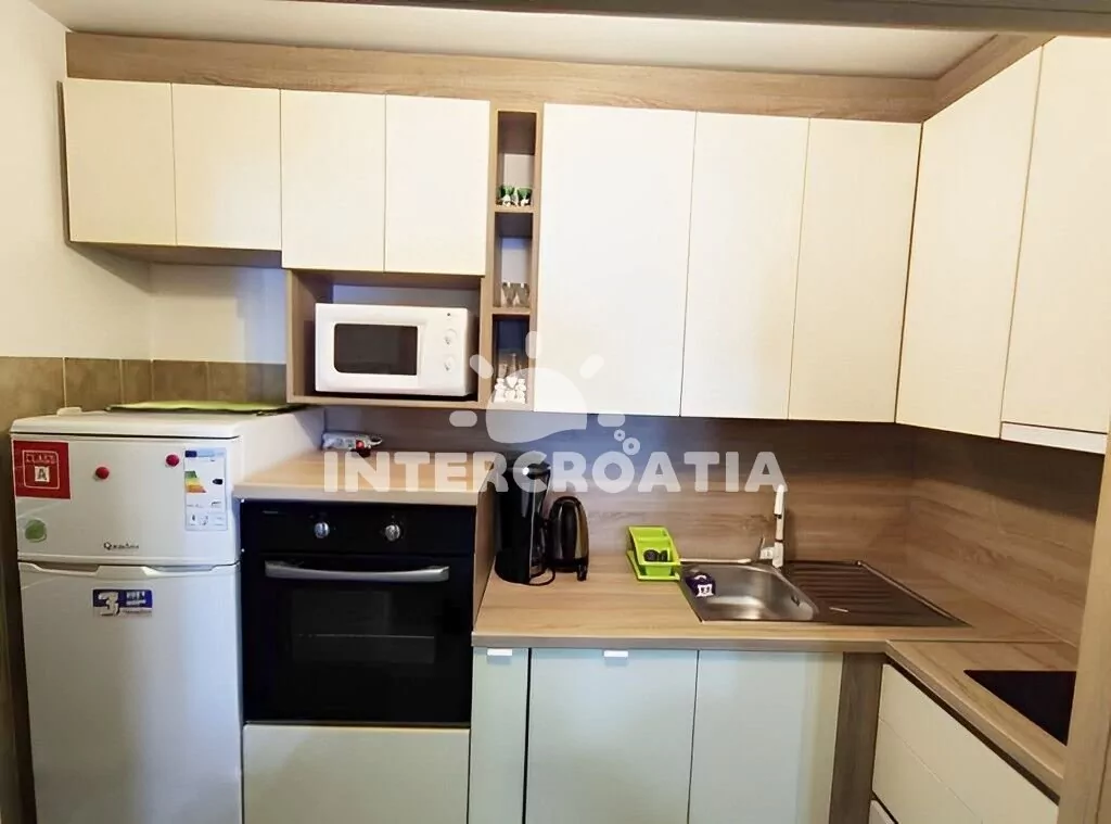 Apartmán (45 m2) s terasou, posezením a výhledem na moře se nachází v přízemí vily. Apartmán má 2 ložnice a je vhodný pro až 4 osoby. Obývací pokoj je spojený s kuchyní. Kuchyňská linka je vybavena…