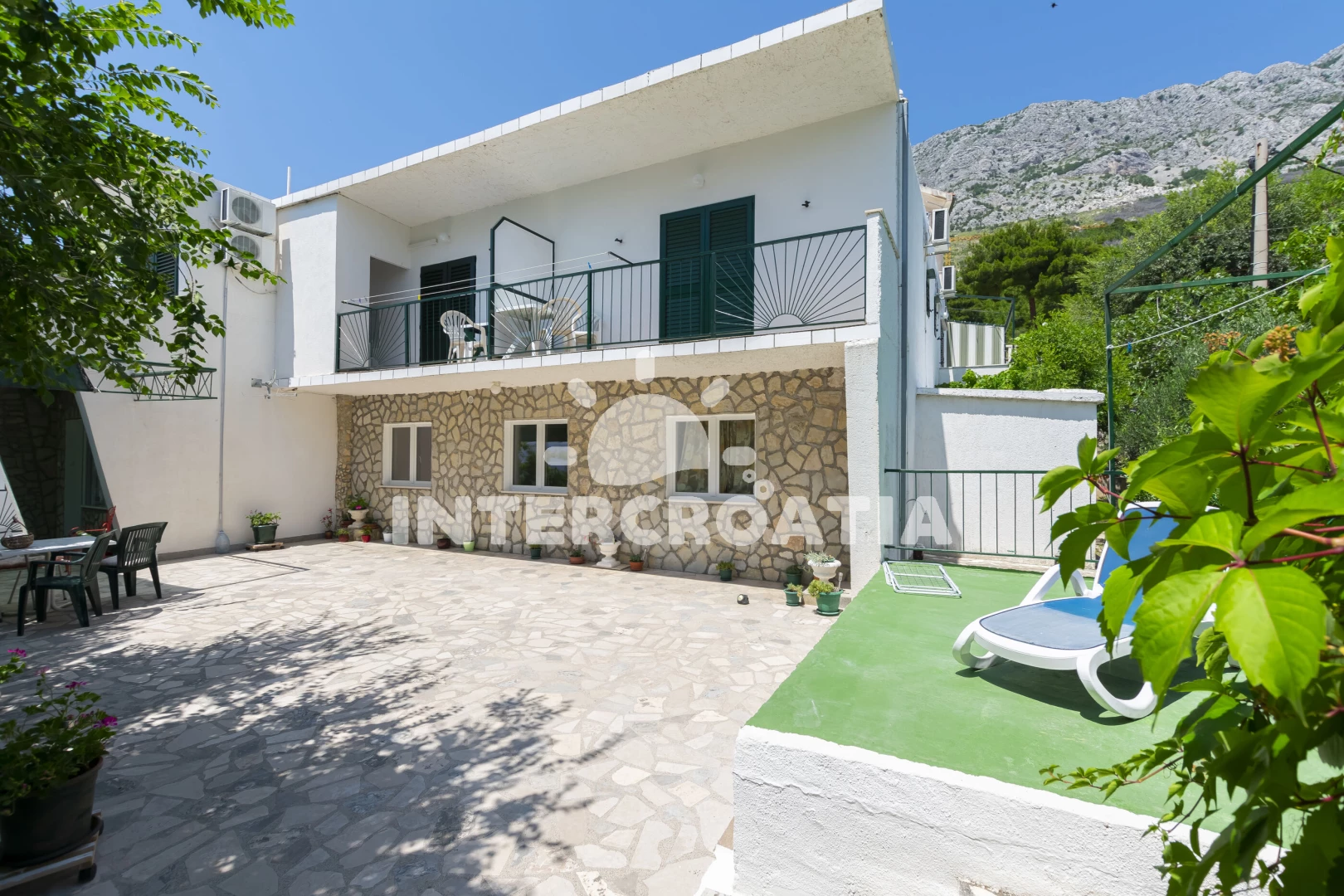 Vzdálenosti: Moře a pláž 100 m (cesta se schody), centrum, supermarket, bar a veřejná doprava 200 m, restaurace 600 m, půjčovna motorových člunů 3 km, ambulance, lékárna, směnárna, čerpací stanice, tenisové kurty, potápění, banka, pošta a půjčovna cyklistických kol 8 km, diskotéka 40 km, trajekt (Split) 35 km, letiště (Split) 50 km.