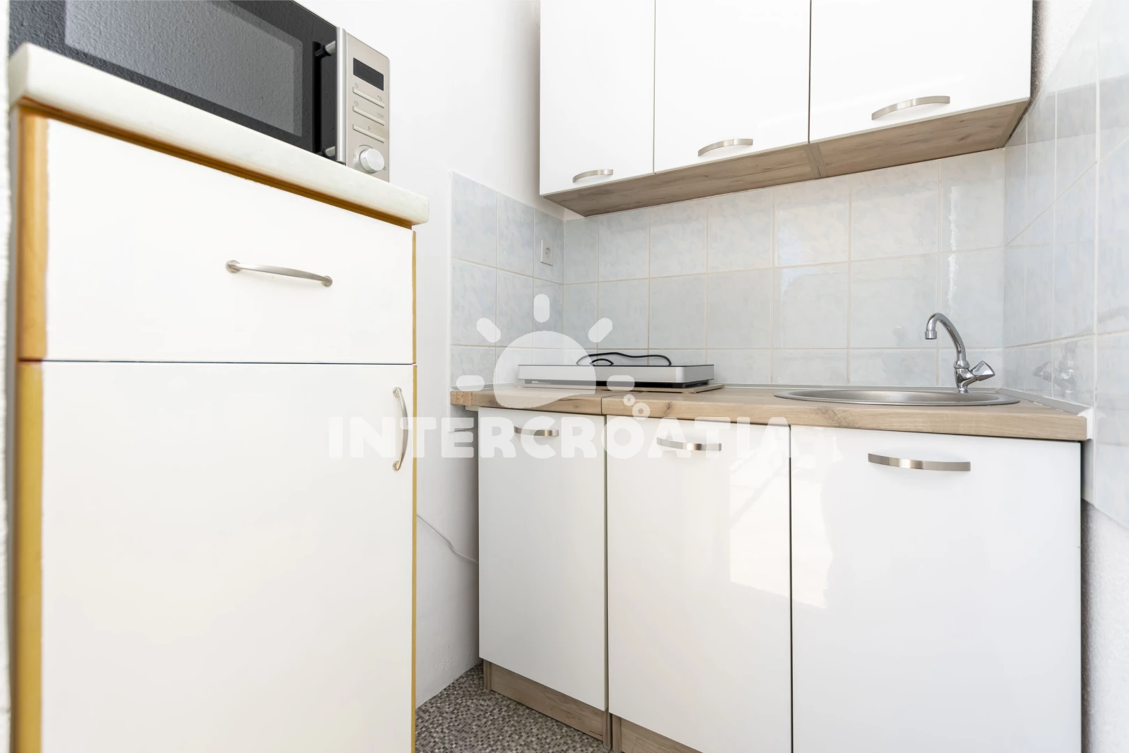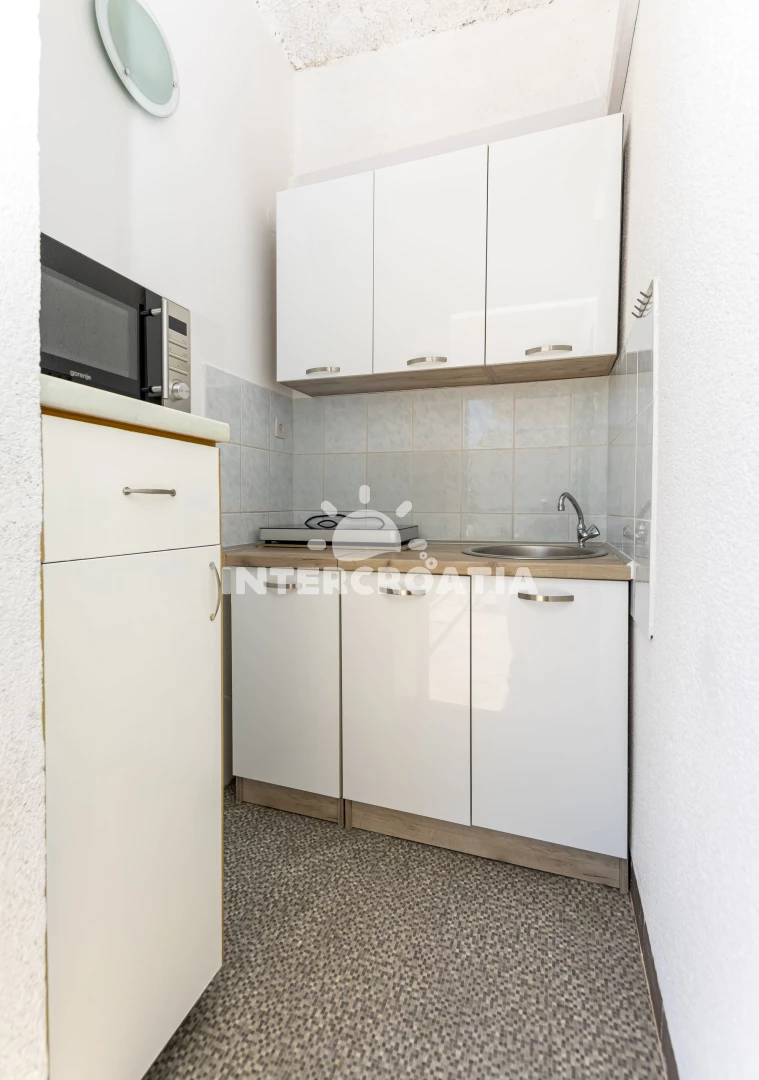 Apartmán (25 m2) s balkonem, posezením a výhledem na moře se nachází ve 2. patře domu. Apartmán má 1 ložnici a je vhodný pro až 2 osoby. Kuchyň s jídelním stolem a kuchyňskou linkou. Kuchyňská linka je vybavena dvouplotýnkovým vařičem, mikrovlnnou troubou, nádobím a lednicí s mrazákem. Ložnice s dvoulůžkem, televizí, klimatizací a vstupem na balkon. Koupelna se sprchovým koutem, umyvadlem a wc. Hostům je k dispozici parkování u objektu zdarma.