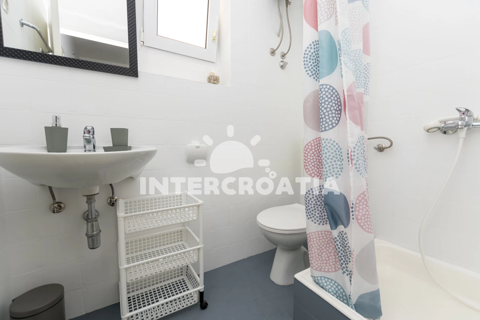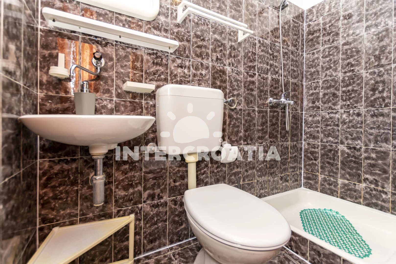Vzdálenosti: Moře a pláž 100 m (cesta se schody), centrum, supermarket, bar a veřejná doprava 200 m, restaurace 600 m, půjčovna motorových člunů 3 km, ambulance, lékárna, směnárna, čerpací stanice, tenisové kurty, potápění, banka, pošta a půjčovna cyklistických kol 8 km, diskotéka 40 km, trajekt (Split) 35 km, letiště (Split) 50 km.
