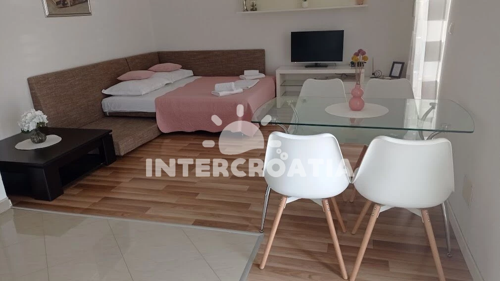 Vzdálenosti: Moře 400 m, pláž 400 m (písčitá a oblázková), supermarket 20 m, bar 50 m, veřejná doprava 150 m, tenisové kurty 200 m, pošta 200 m, muzeum 250 m, lékárna 300 m, ambulance 300 m, směnárna 350 m, čerpací stanice 350 m, diskotéka 400 m, centrum 400 m, restaurace 400 m, banka 400 m, trajekt (Makarska) 498 m, marina 500 m, půjčovna kol 800 m,
