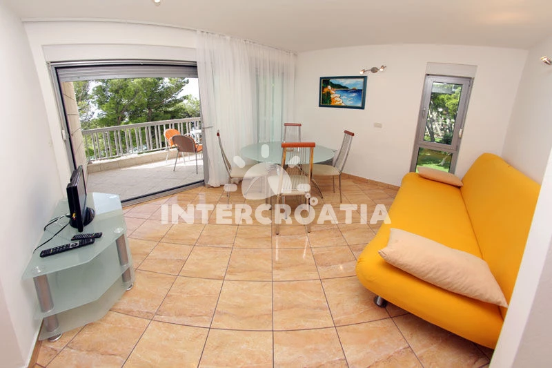 Vzdálenosti: Moře 5 m, pláž 5 m (oblázky), restaurace 5 m, bar 20 m, supermarket 300 m, lékárna 300 m, směnárna 500 m, čerpací stanice 500 m, potápění 500 m, půjčovna motorových člunů 500 m, trajekt (Makarska) 1 km, veřejná doprava 1 km, marina 1 km, banka 1 km, centrum 1,5 km, pošta 1,5 km, diskotéka 1,5 km, ambulance 2 km, letiště (Split) 85 km,