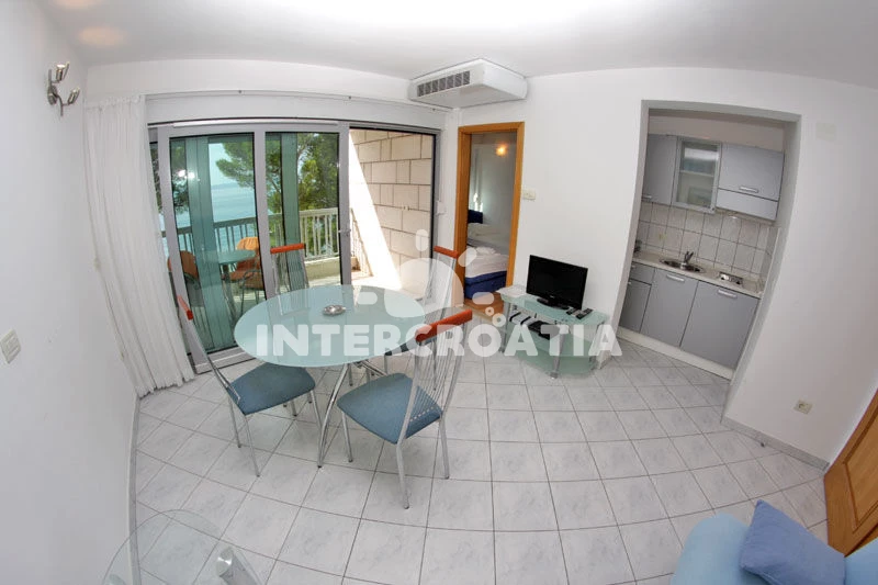 Vzdálenosti: Moře 5 m, pláž 5 m (oblázky), restaurace 5 m, bar 20 m, supermarket 300 m, lékárna 300 m, směnárna 500 m, čerpací stanice 500 m, potápění 500 m, půjčovna motorových člunů 500 m, trajekt (Makarska) 1 km, veřejná doprava 1 km, marina 1 km, banka 1 km, centrum 1,5 km, pošta 1,5 km, diskotéka 1,5 km, ambulance 2 km, letiště (Split) 85 km,