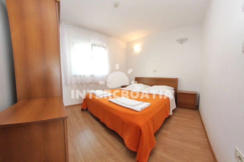 Apartmán (55 m2) s balkonem, a výhledem na moře. Nachází se ve 2. patře objektu. Apartmán má 2 ložnice a je vhodný pro až 6 osob. Kuchyňská linka je vybavena varnou deskou, kávovarem, rychlovarnou…
