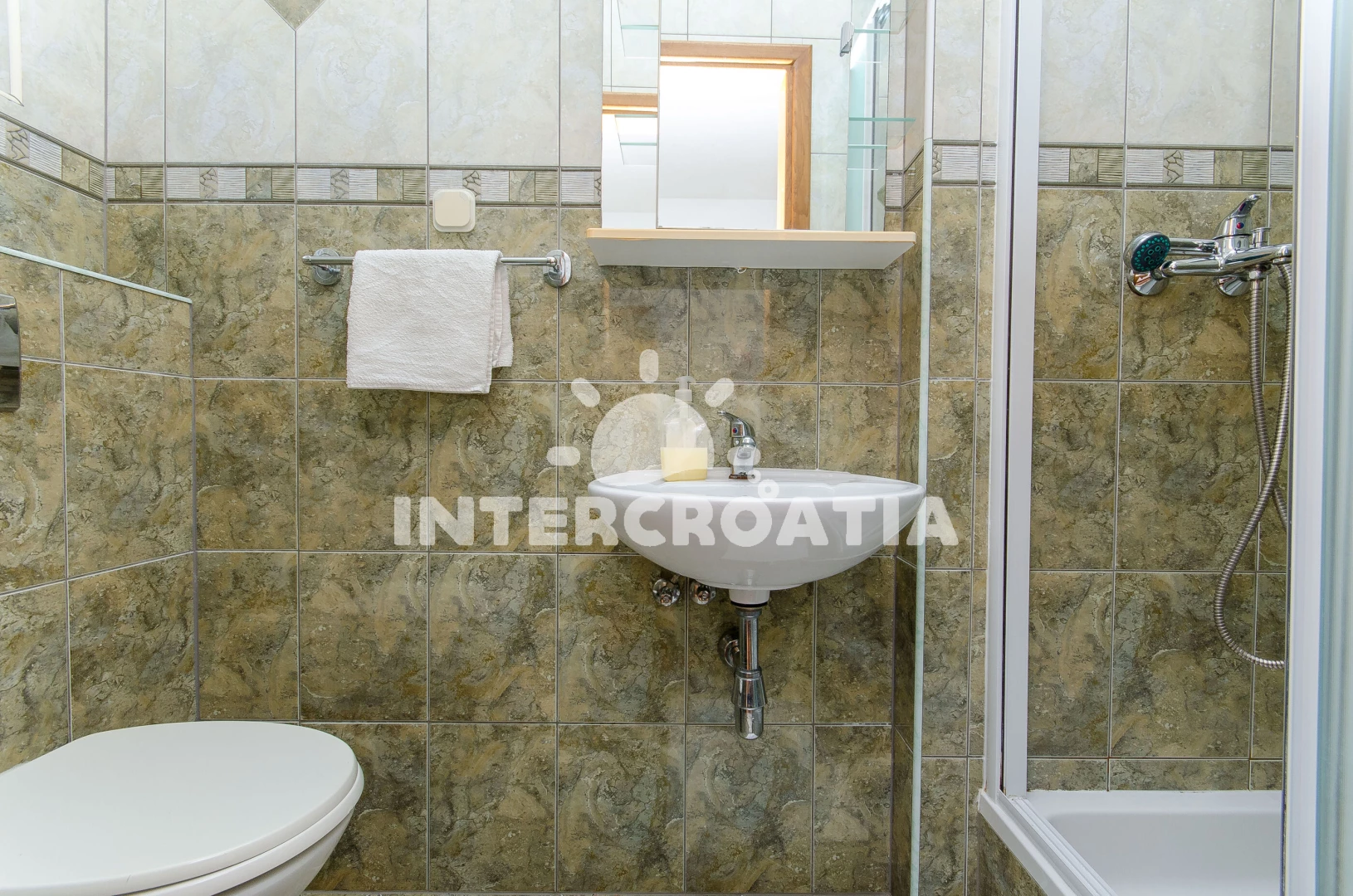 Vzdálenosti: Moře 600 m, pláž 1 km (písek), bar 20 m, supermarket 200 m, restaurace 200 m, lékárna 200 m, banka 500 m, veřejná doprava 1 km, centrum 1,5 km, pošta 1,5 km, ambulance 3 km, čerpací stanice 3 km, trajekt (Split) 60 km, letiště (Split) 75 km,