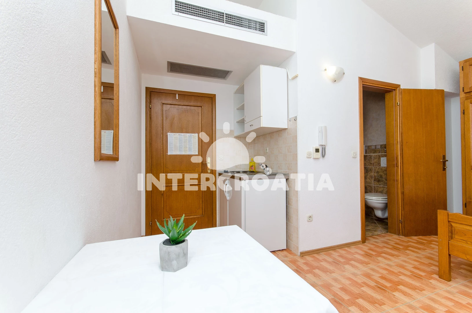 Apartmán (20 m2) s balkonem. Nachází se ve 3. patře objektu. Kuchyňská linka je vybavena varnou deskou, nádobím, lednicí, mrazákem. K dispozici dvoulůžko, televize se satelitním programem, žehlička.…