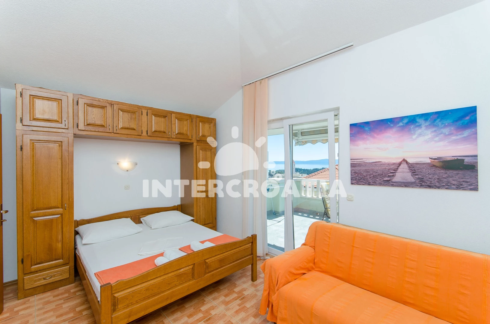 Vzdálenosti: Moře 600 m, pláž 1 km (písek), bar 20 m, supermarket 200 m, restaurace 200 m, lékárna 200 m, banka 500 m, veřejná doprava 1 km, centrum 1,5 km, pošta 1,5 km, ambulance 3 km, čerpací stanice 3 km, trajekt (Split) 60 km, letiště (Split) 75 km,
