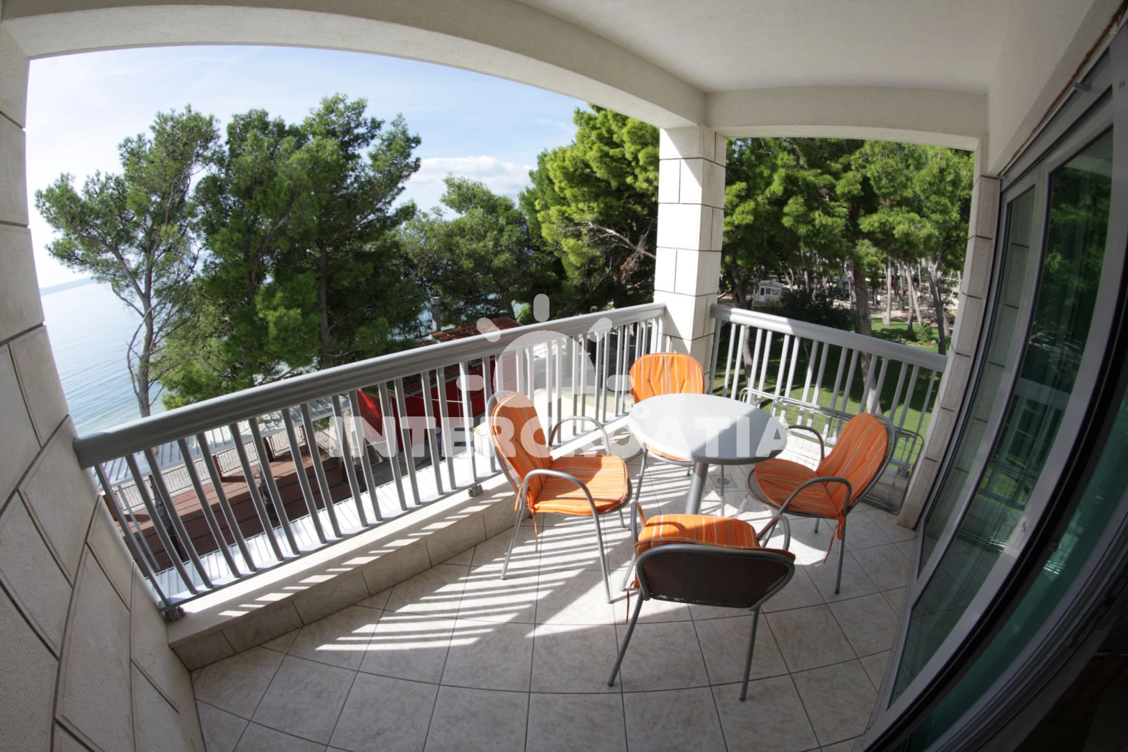 Vzdálenosti: Moře 5 m, pláž 5 m (oblázky), restaurace 5 m, bar 20 m, supermarket 300 m, lékárna 300 m, směnárna 500 m, čerpací stanice 500 m, potápění 500 m, půjčovna motorových člunů 500 m, trajekt (Makarska) 1 km, veřejná doprava 1 km, marina 1 km, banka 1 km, centrum 1,5 km, pošta 1,5 km, diskotéka 1,5 km, ambulance 2 km, letiště (Split) 85 km,